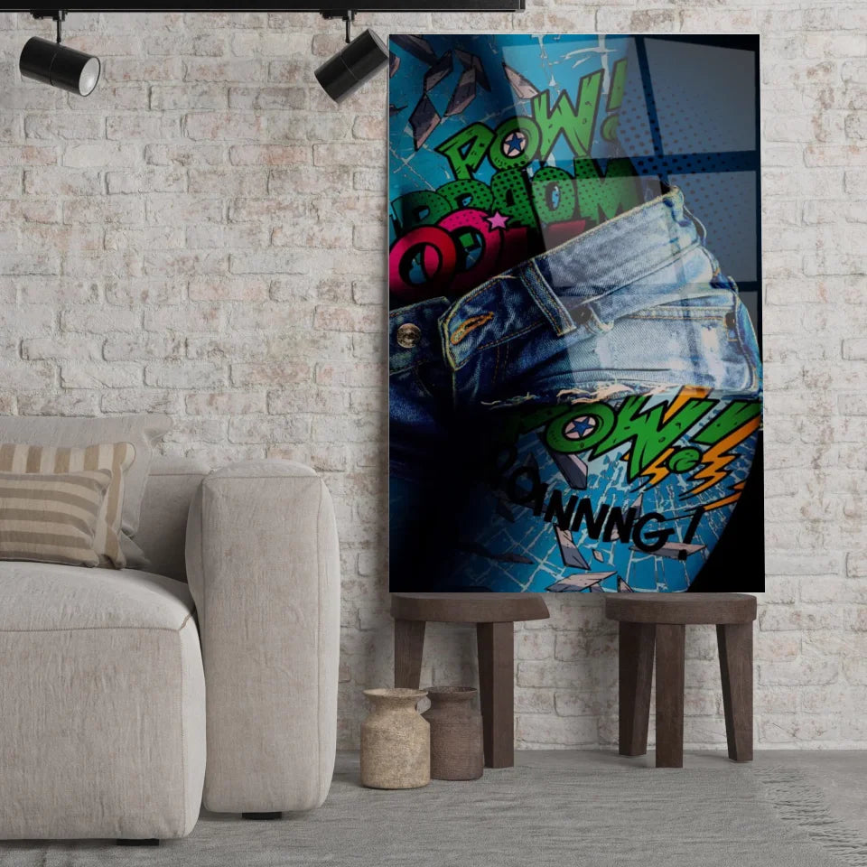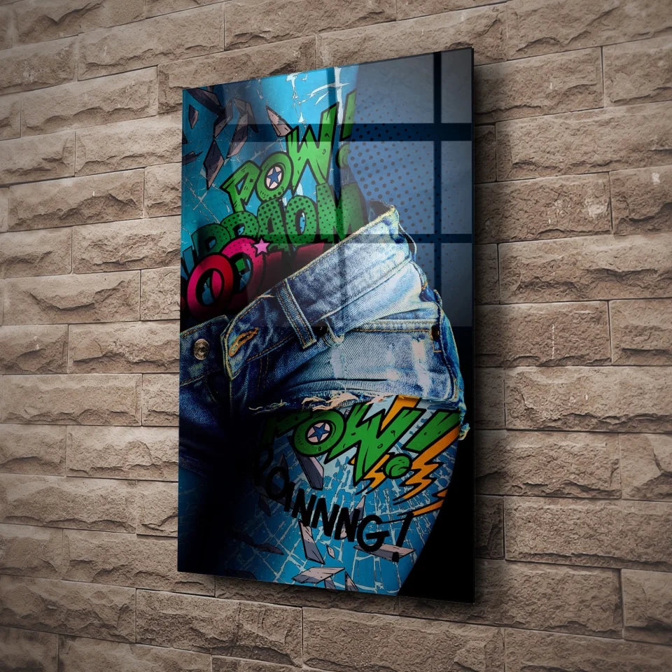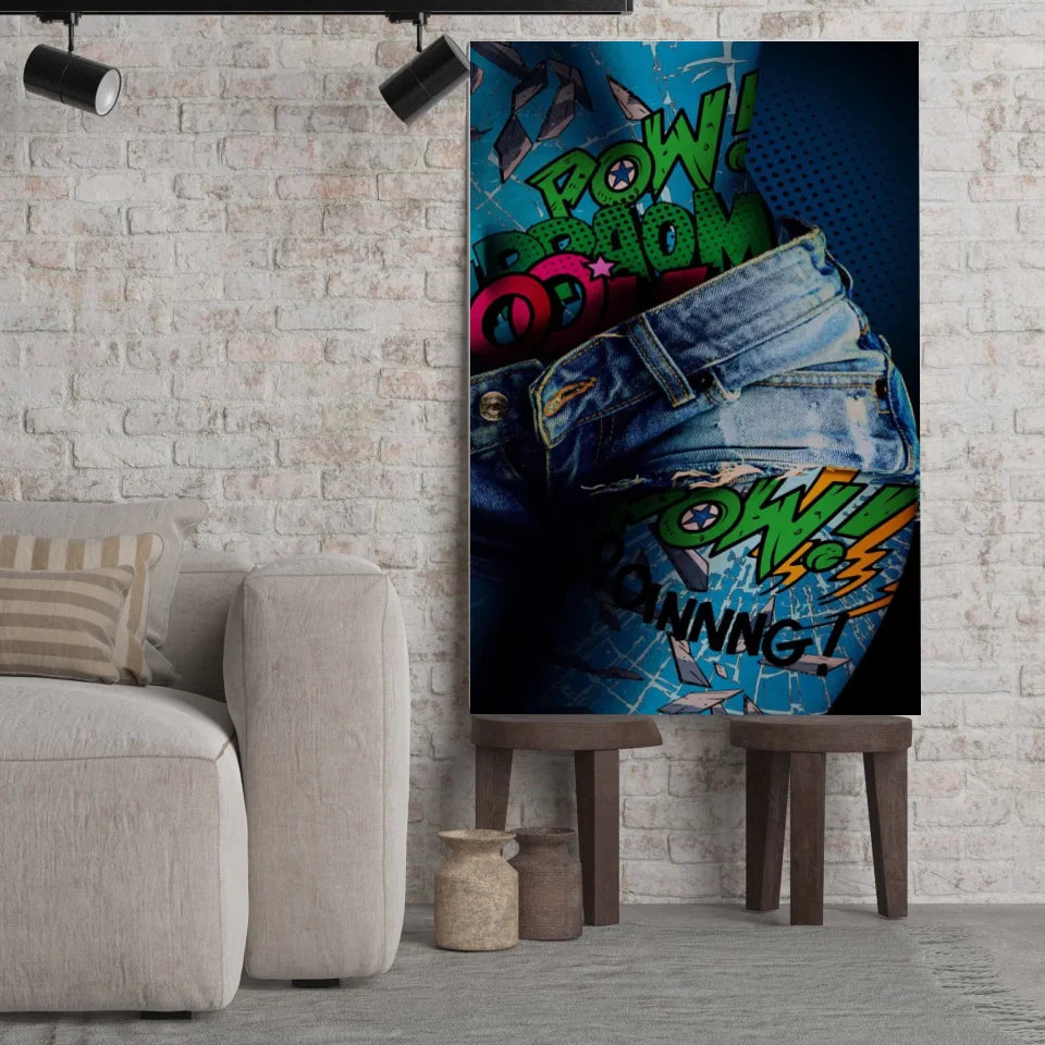Apportez une touche dynamique et audacieuse à votre intérieur avec ce tableau street art Effet Comics et Denim.