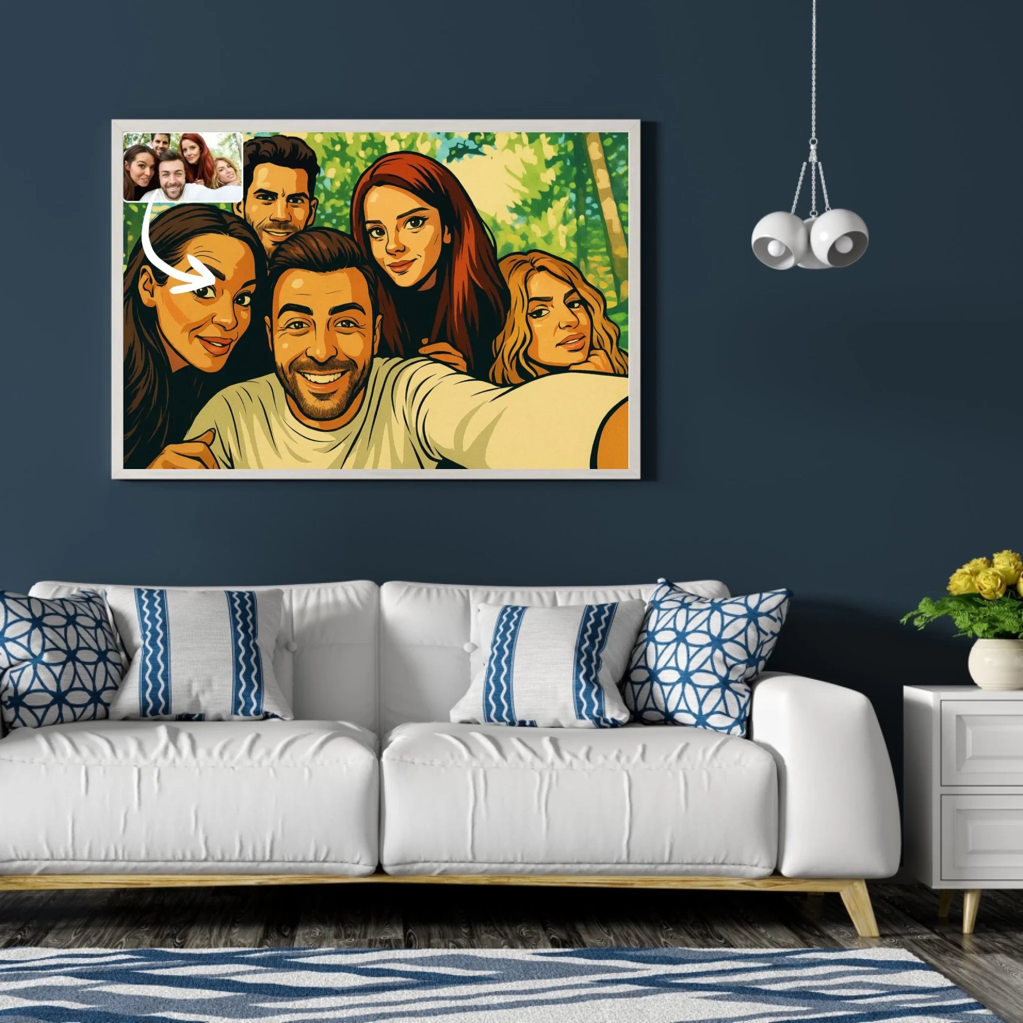 Faites entrer l’univers du street art et de l’animation dans votre intérieur avec le portrait horizontal personnalisé effet cartoon type GTA signé Toile Unique.