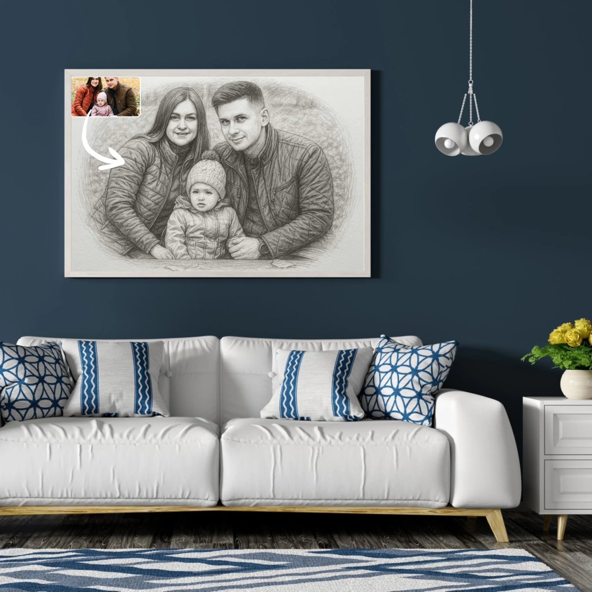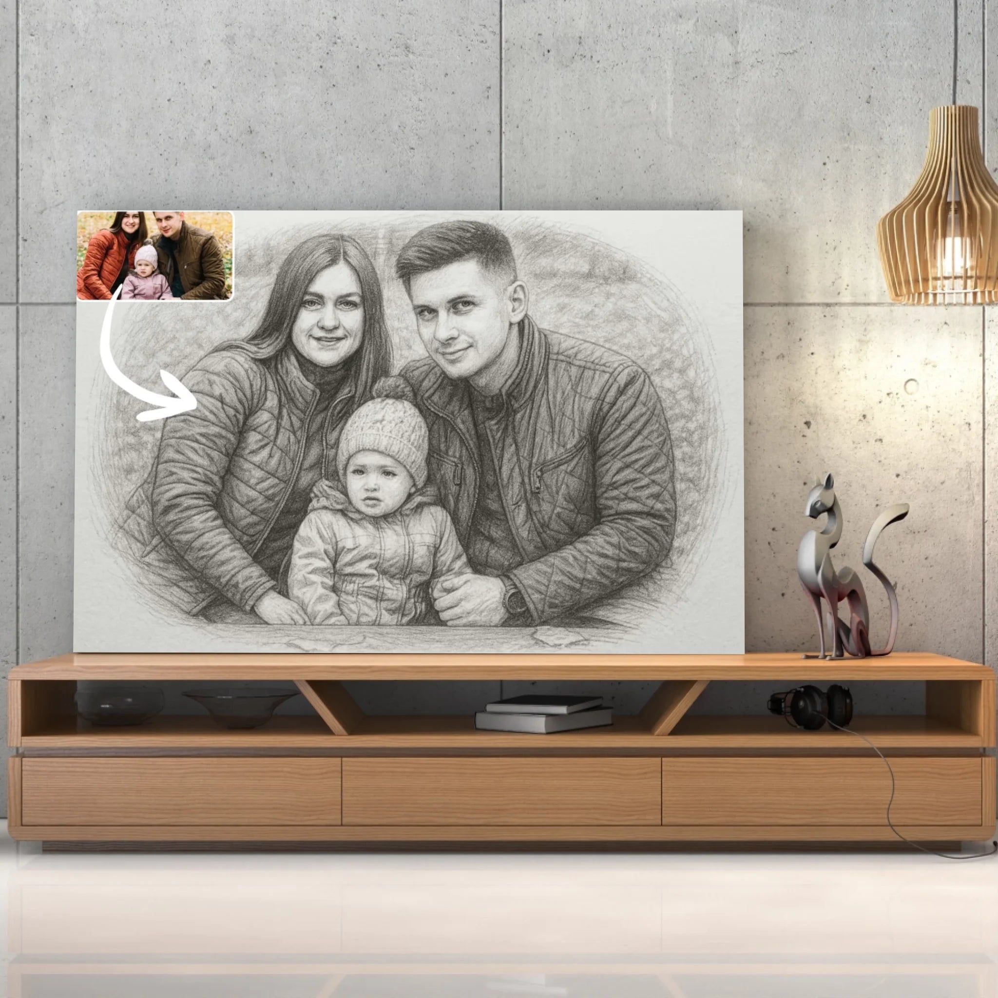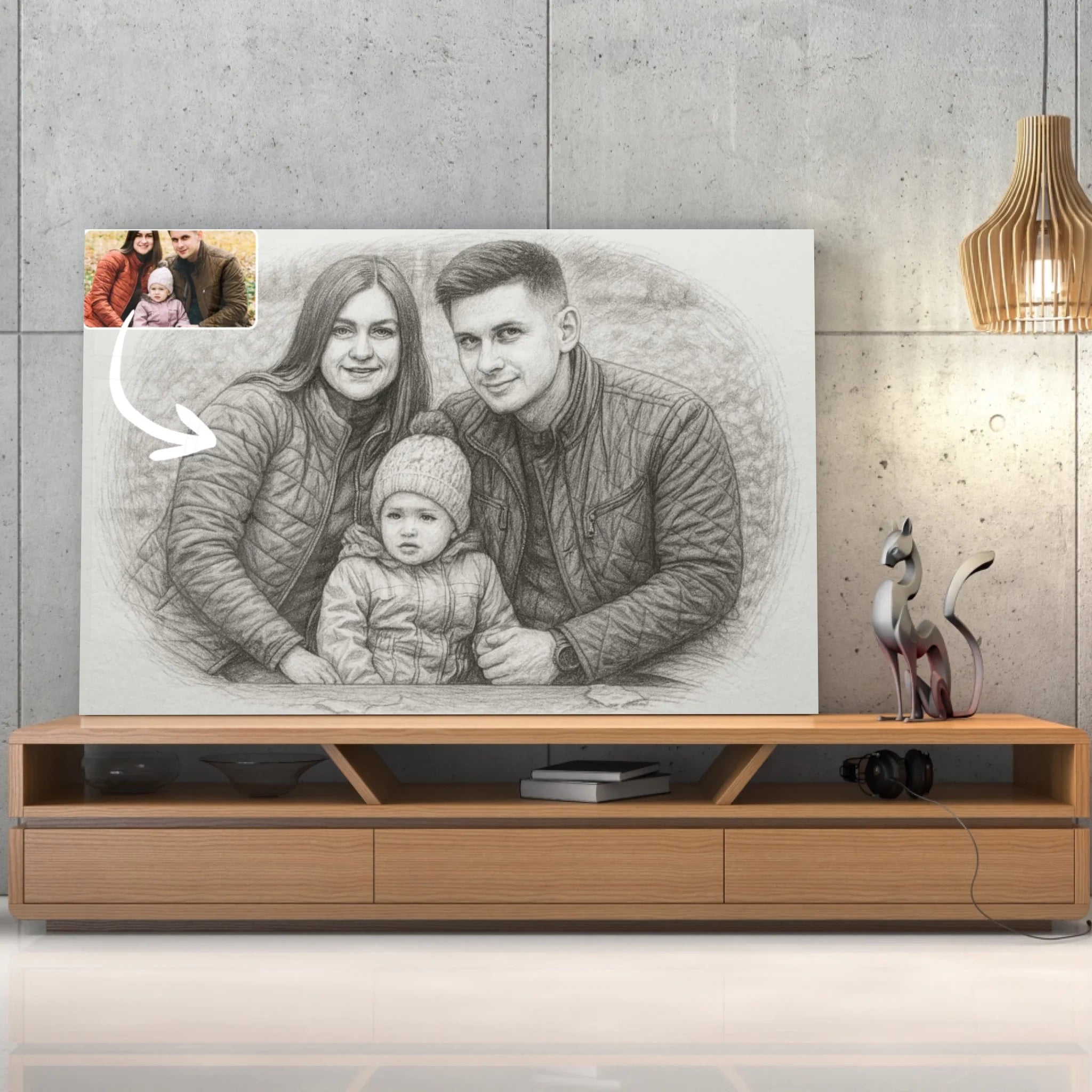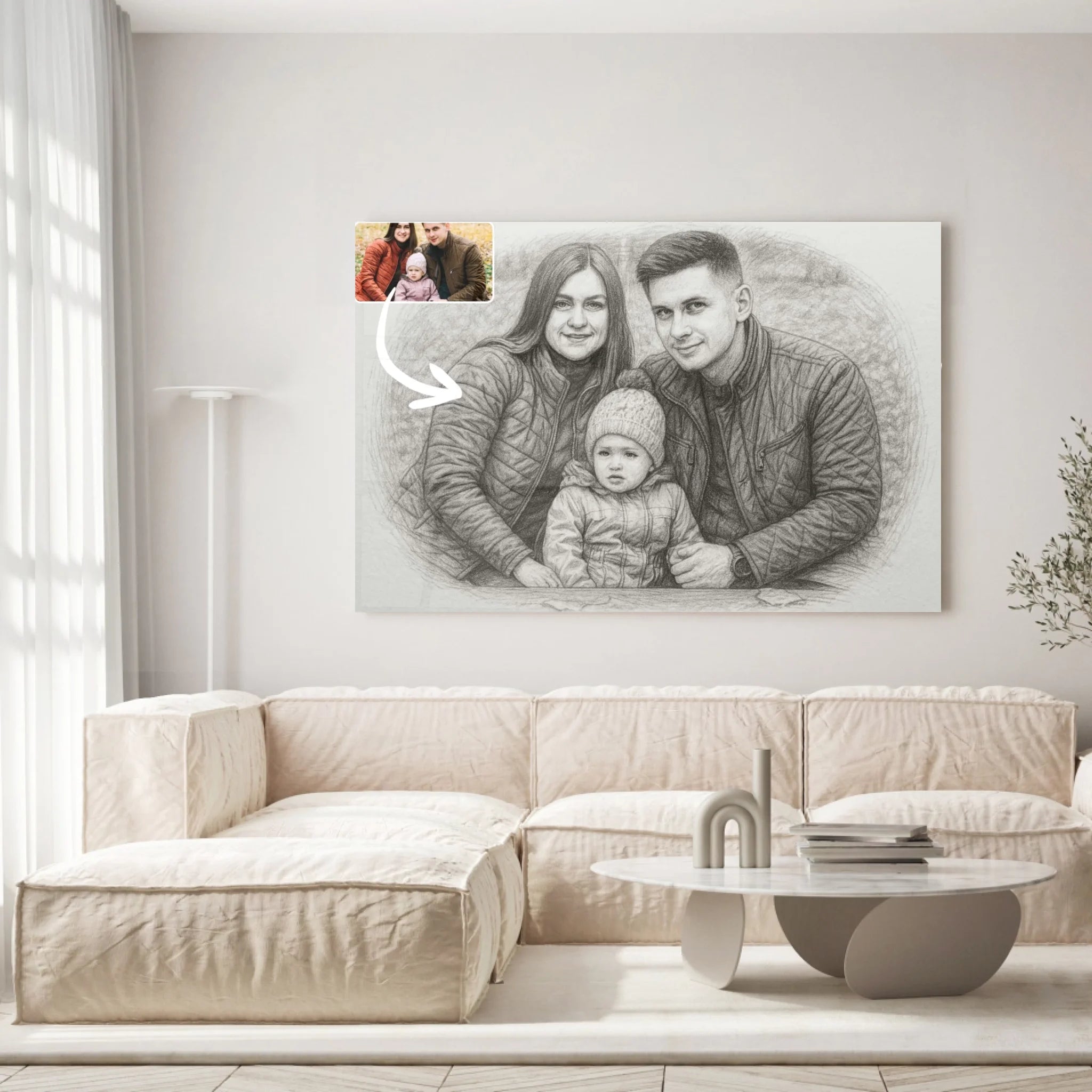 Chez Toile Unique, nous croyons que la simplicité est la forme la plus pure de l’art. Ce portrait horizontal personnalisé effet dessin au crayon graphite capture la beauté naturelle de vos émotions avec un rendu sobre, élégant et intemporel.
