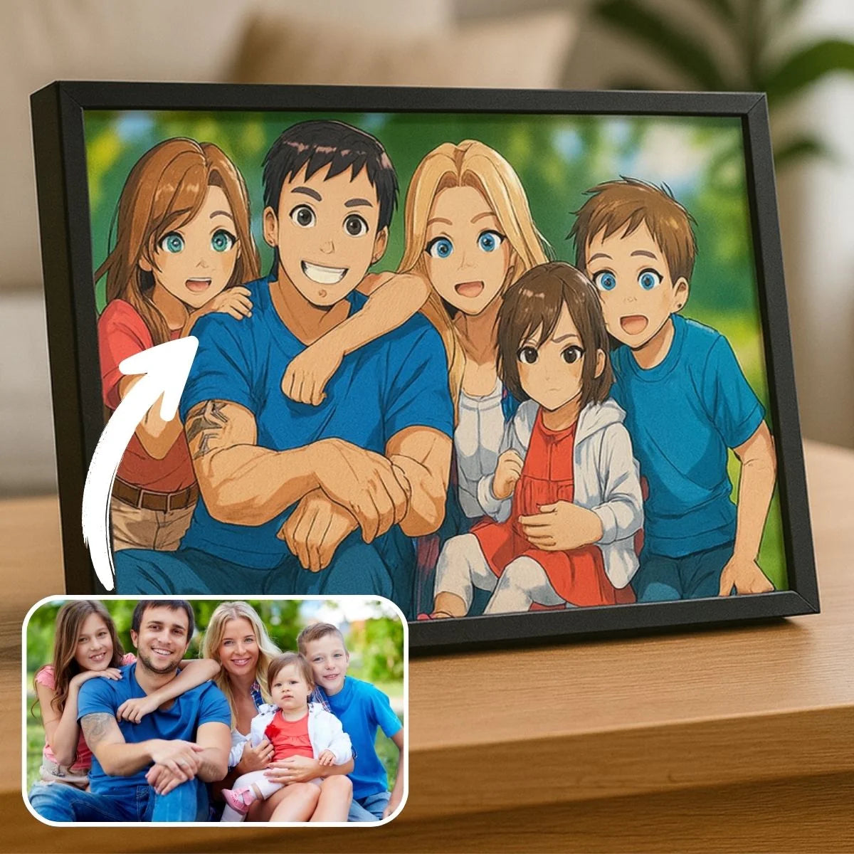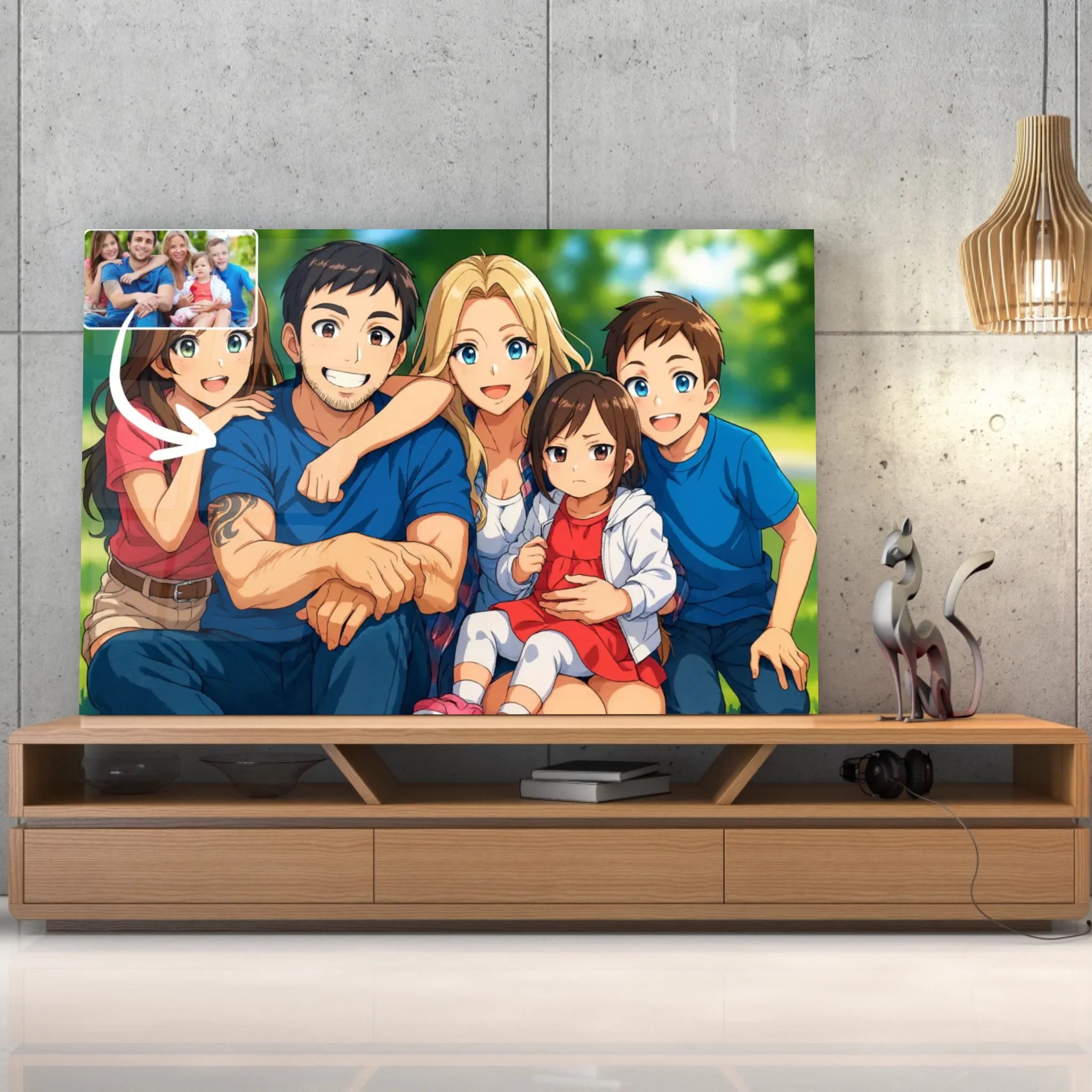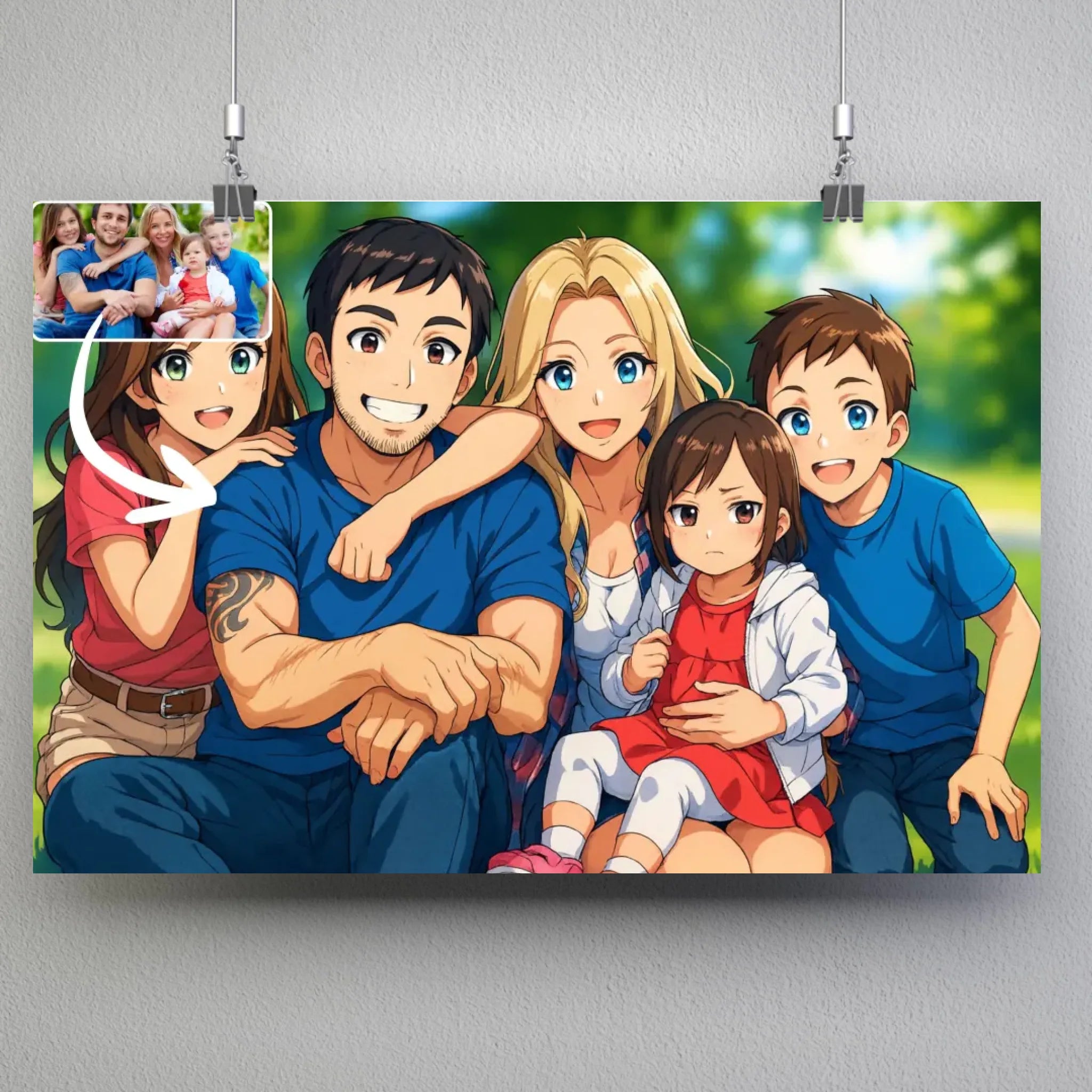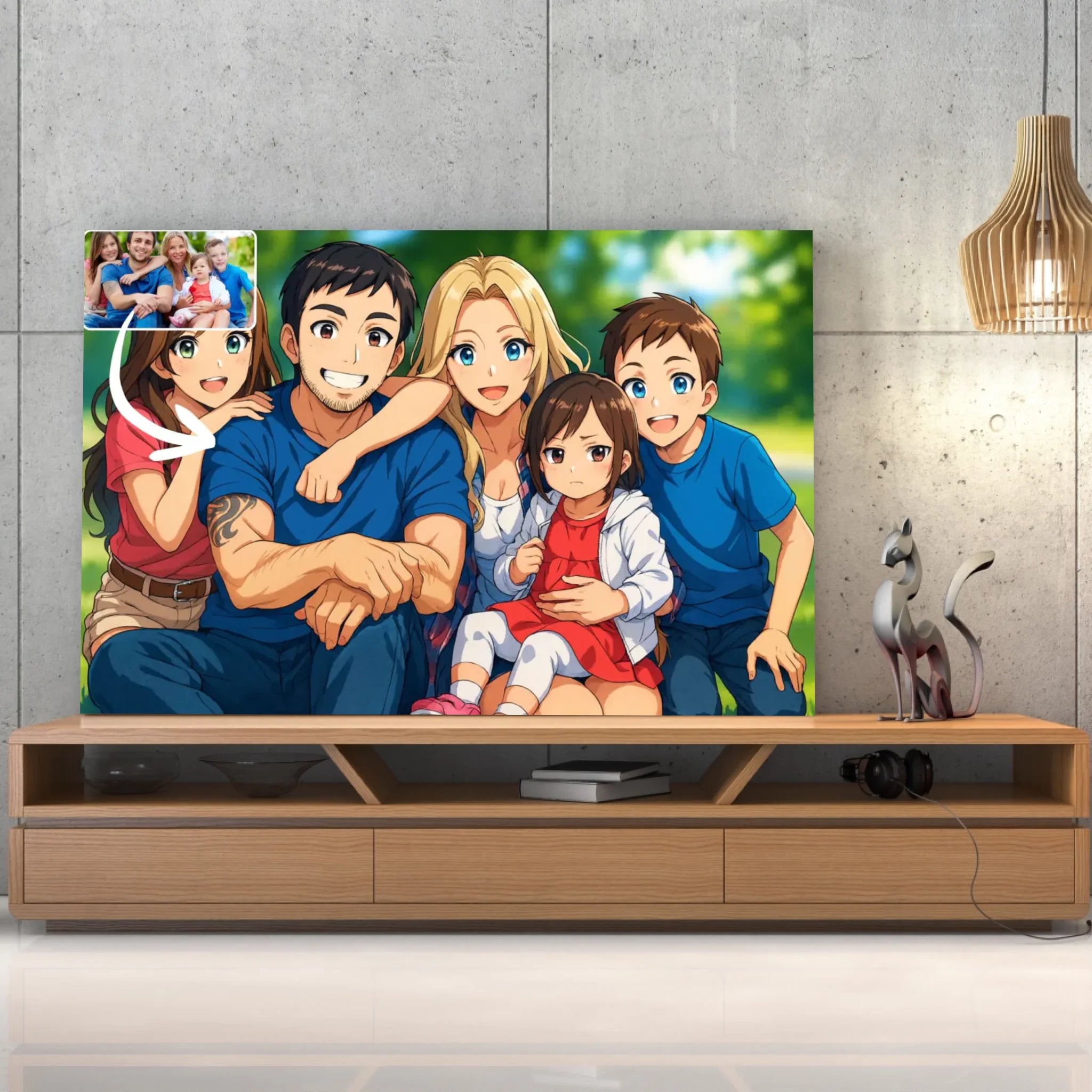 Chez Toile Unique, nous avons imaginé ce portrait horizontal personnalisé manga japonais pour capturer vos plus beaux moments dans une composition harmonieuse et vivante. Le format horizontal est idéal pour les portraits de couple, de famille ou d’amis, offrant une mise en scène naturelle et équilibrée, à la manière des grandes planches d’anime. Chaque création évoque l’énergie, la tendresse et la magie de l’univers manga.