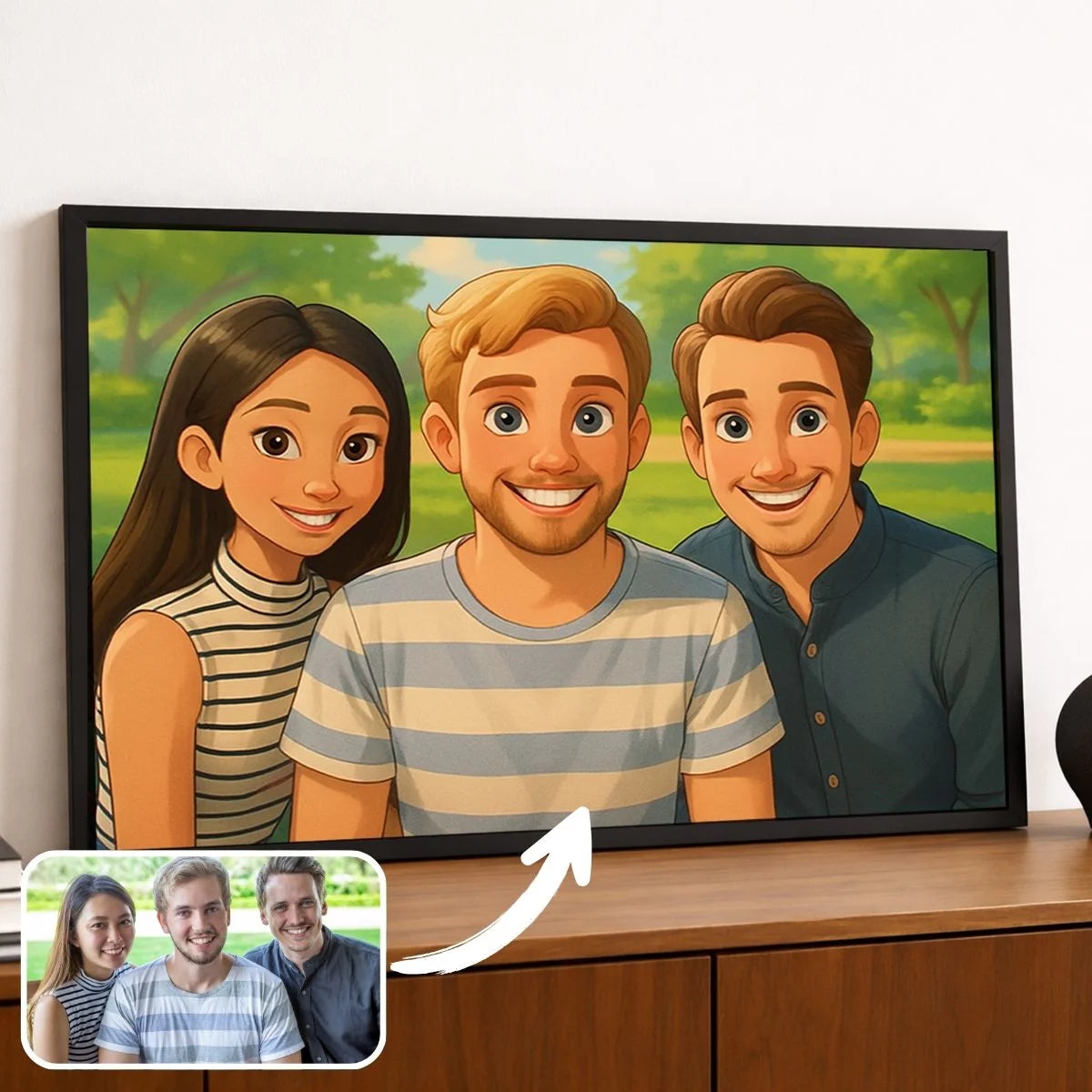 Offrez à vos souvenirs une touche de magie avec notre portrait horizontal personnalisé style Disney. Transformez votre photo en une illustration personnalisée inspirée des plus beaux univers féeriques, où douceur, couleurs et émotions se mêlent pour créer une scène digne d’un véritable conte. Grâce au format horizontal, vous pouvez réunir plusieurs personnes dans une composition harmonieuse, parfaite pour raconter une histoire pleine de tendresse.