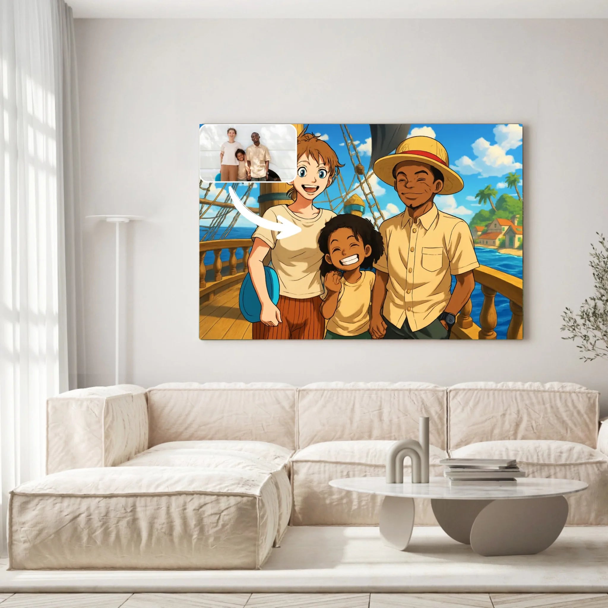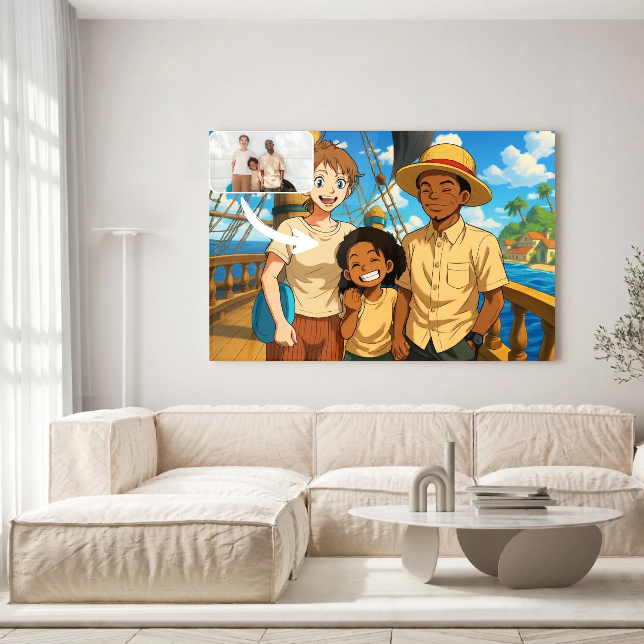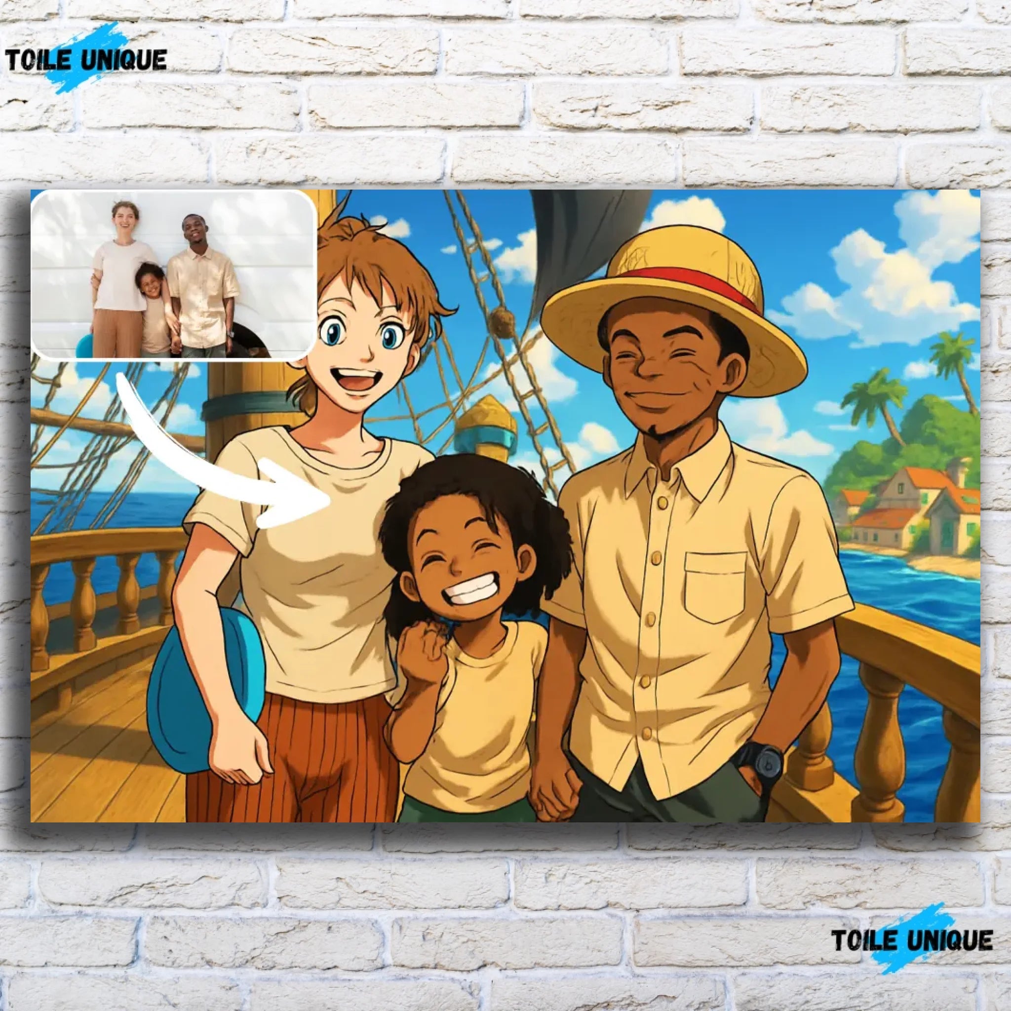 Avec notre toile personnalisée One Piece, vos moments en couple, en famille ou entre amis prennent vie sous une forme originale et immersive. Chaque portrait personnalisé devient une scène riche en émotions, où chacun trouve sa place dans cette aventure commune. Le format horizontal permet de raconter une histoire, de mettre en valeur les interactions et de transformer une simple photo en un souvenir unique.