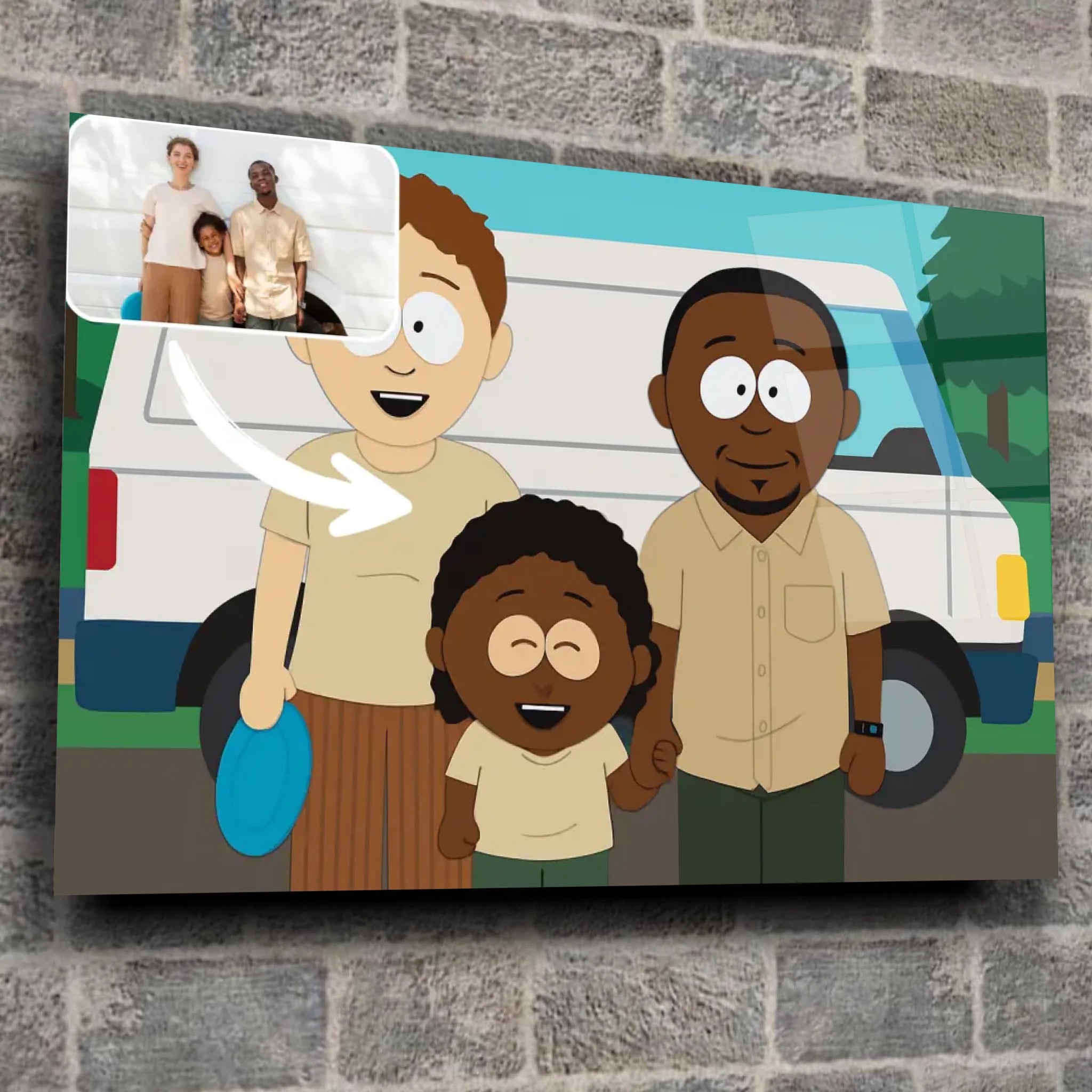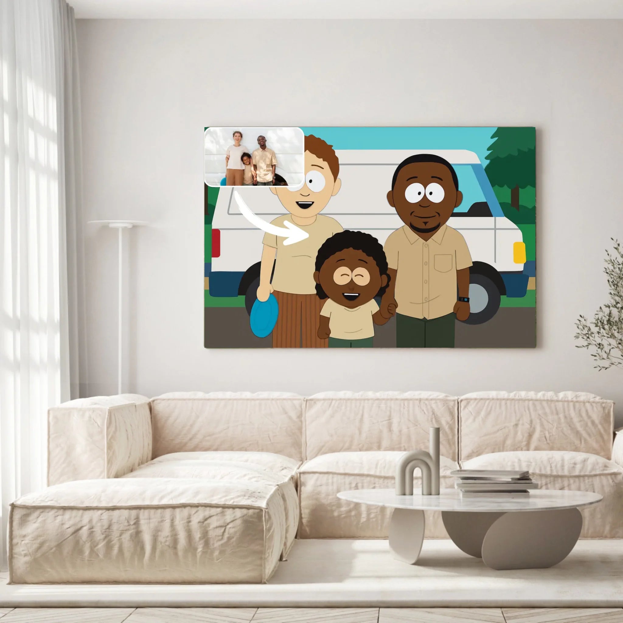 Sur Toile Unique, créer votre portrait horizontal personnalisé style South Park est simple et rapide. Il vous suffit d’importer votre photo, et nos artistes la transforment en une illustration personnalisée South Park fidèle à votre image, tout en respectant l’esprit unique de cet univers.