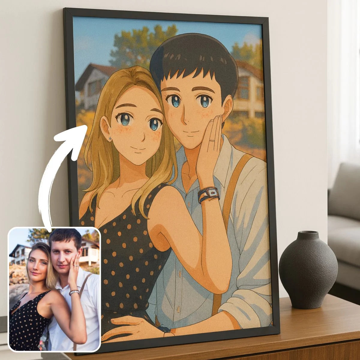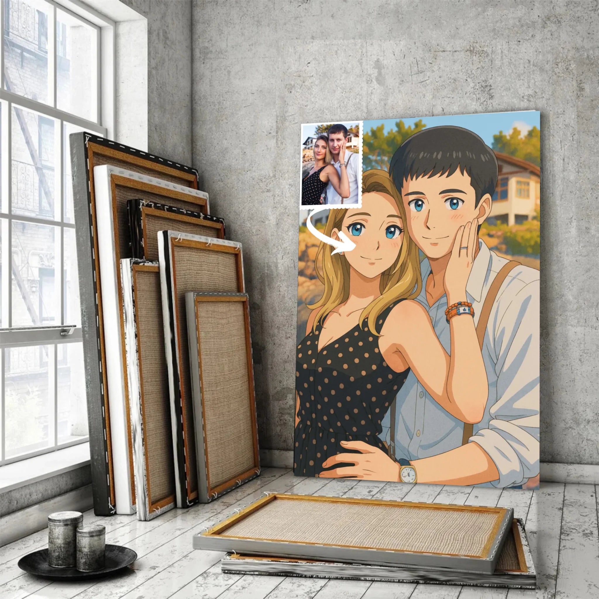 Chez Toile Unique, nous mettons la créativité japonaise au service de vos souvenirs. Votre toile personnalisée style anime japonais capture votre personnalité tout en y ajoutant cette touche artistique unique propre à la culture manga. Que vous soyez fan d’action, de romance ou de fantasy, ce portrait personnalisé manga fera ressortir le héros ou l’héroïne qui sommeille en vous.