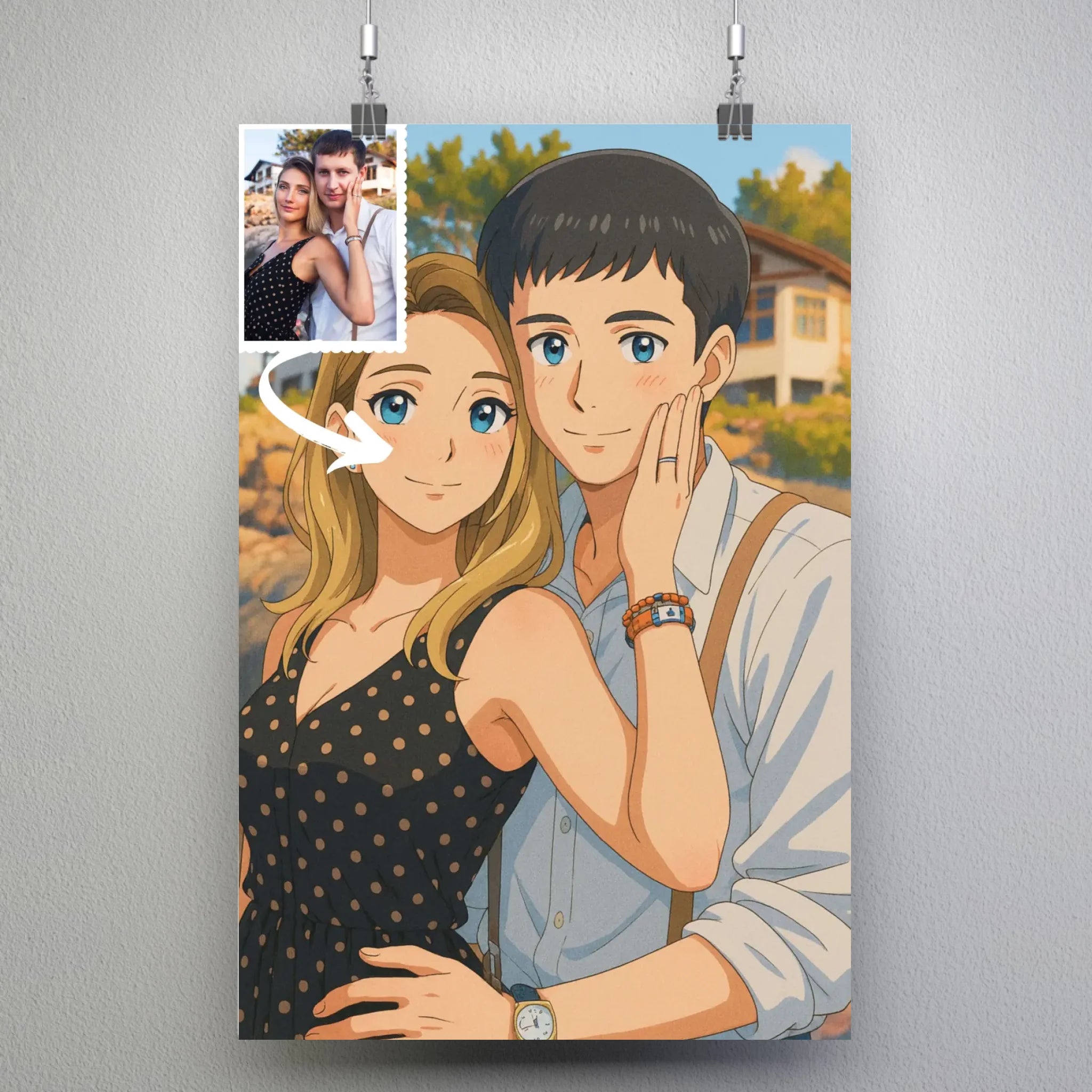 Donnez vie à vos photos comme dans un véritable shōnen ou un film d’animation japonais avec notre portrait personnalisé style anime japonais manga. Transformez votre image en une illustration personnalisée manga au rendu dynamique et expressif, inspirée de l’univers fascinant des animes. Grâce à notre technologie de transformation, vos traits prennent l’apparence d’un personnage tout droit sorti d’un manga : regard intense, couleurs vibrantes et émotions puissantes.
