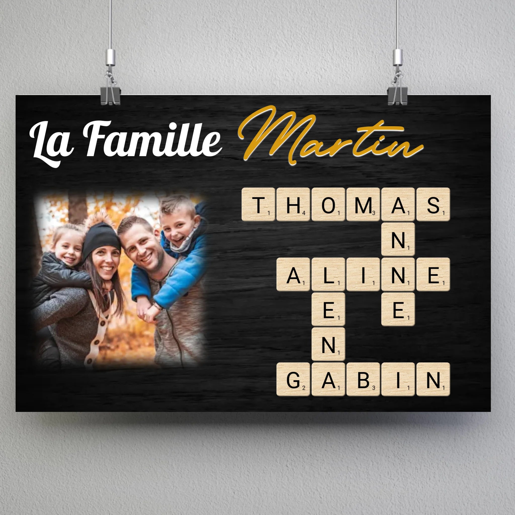 Tableau Personnalisé Famille - Prénoms en Style Scrabble