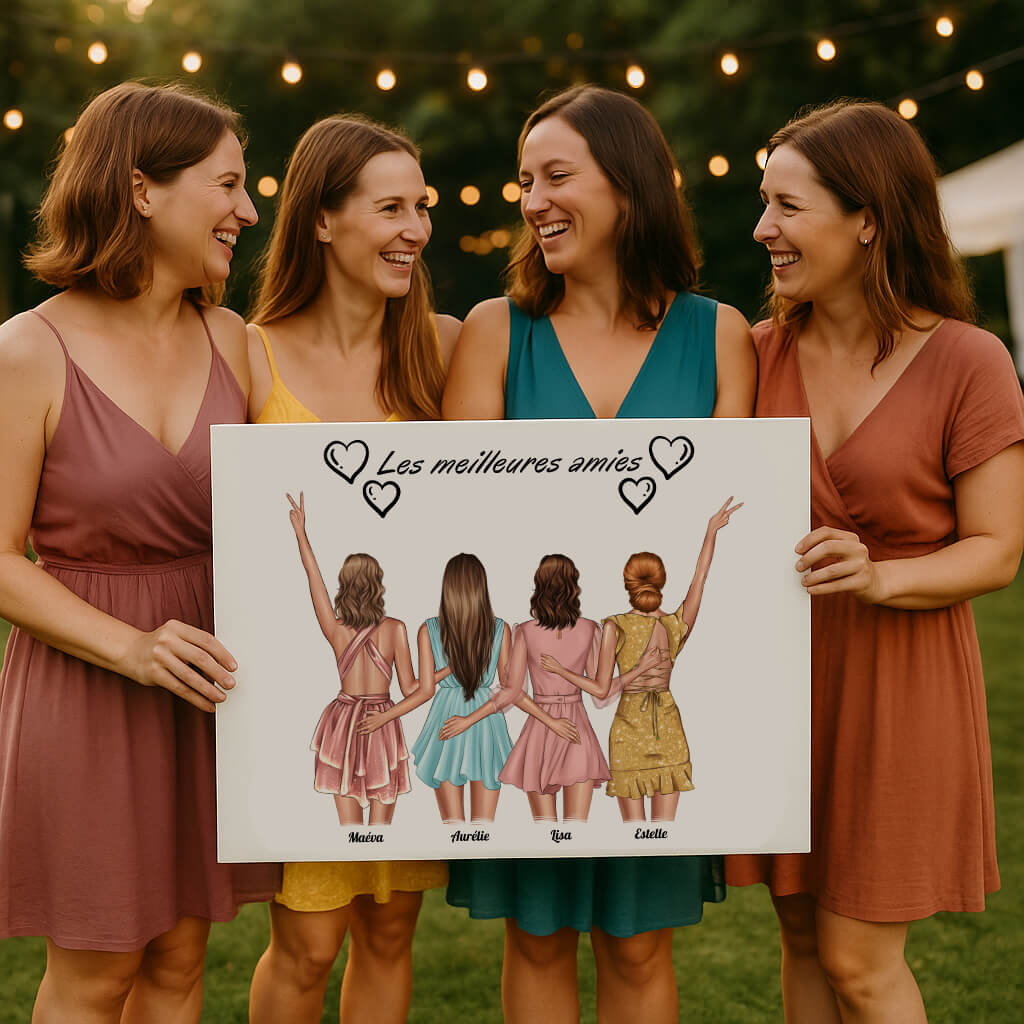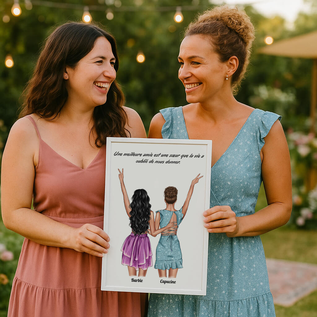 Le tableau meilleure amie personnalisé est une création unique qui illustre la complicité et les souvenirs partagés.