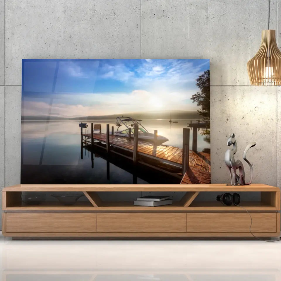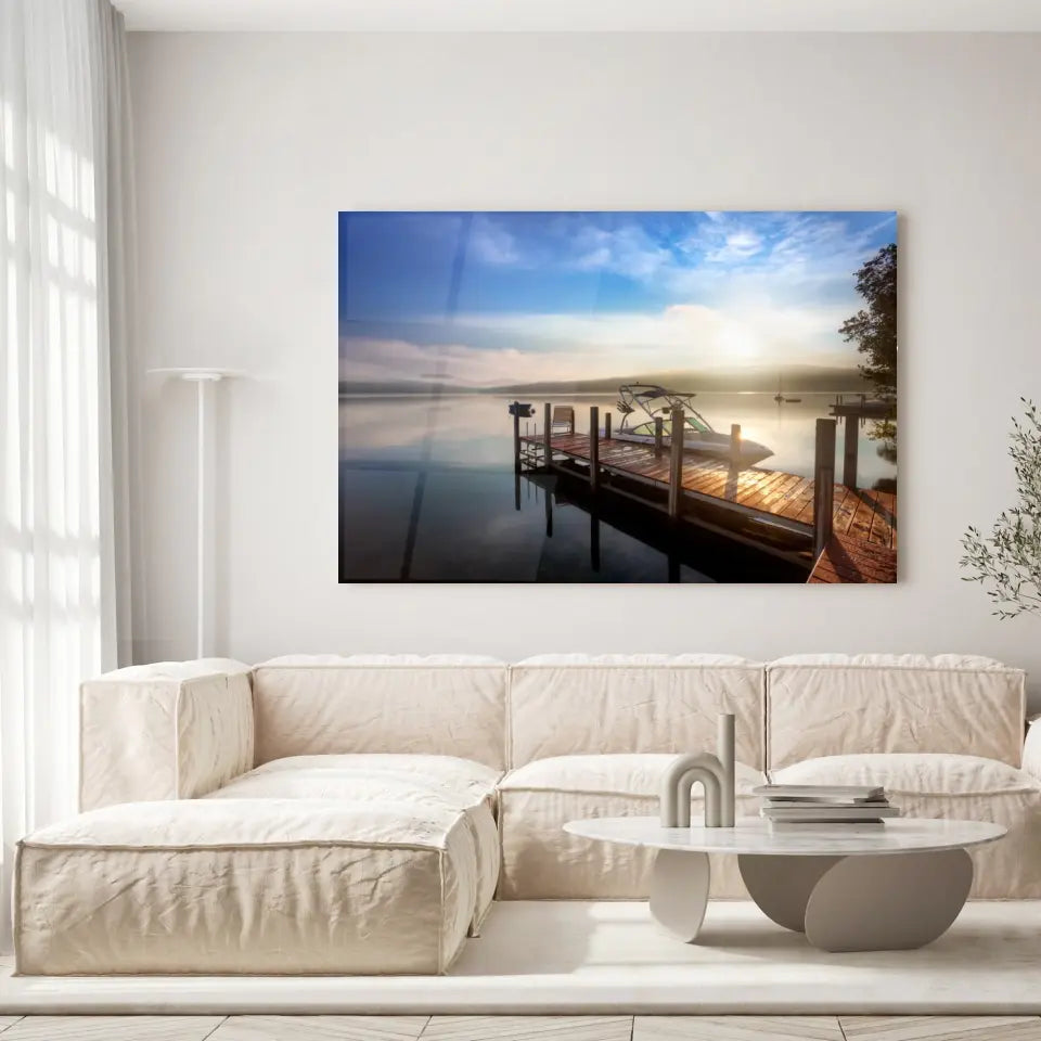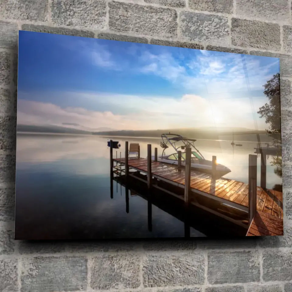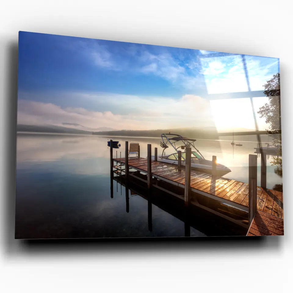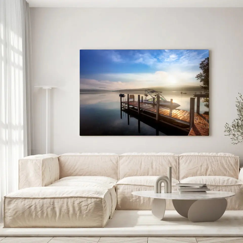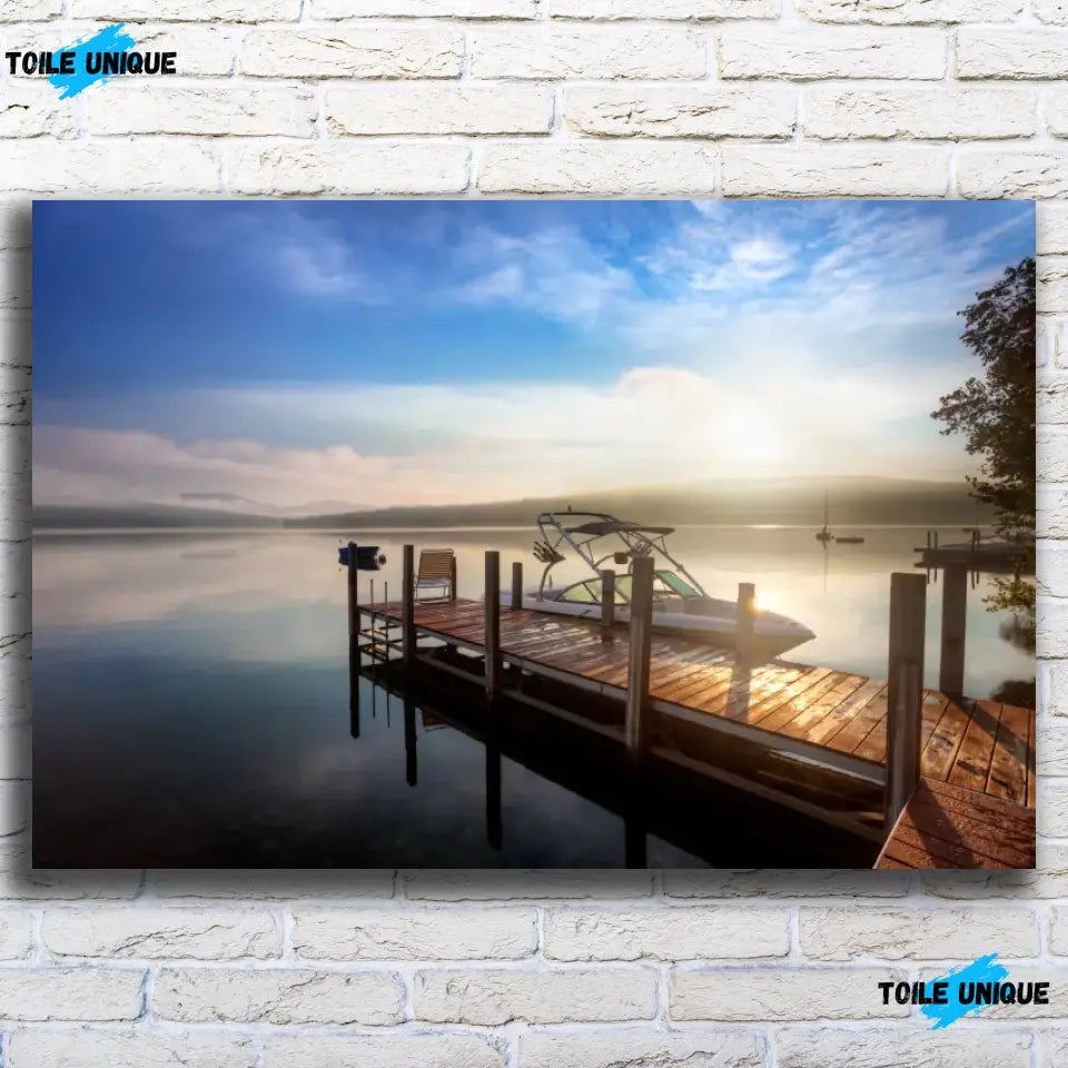 Tableau Ponton et Bateau au Lever du Soleil - Calme et Sérénité Matinale