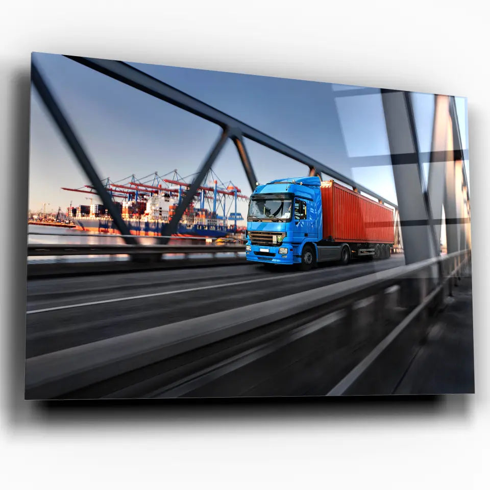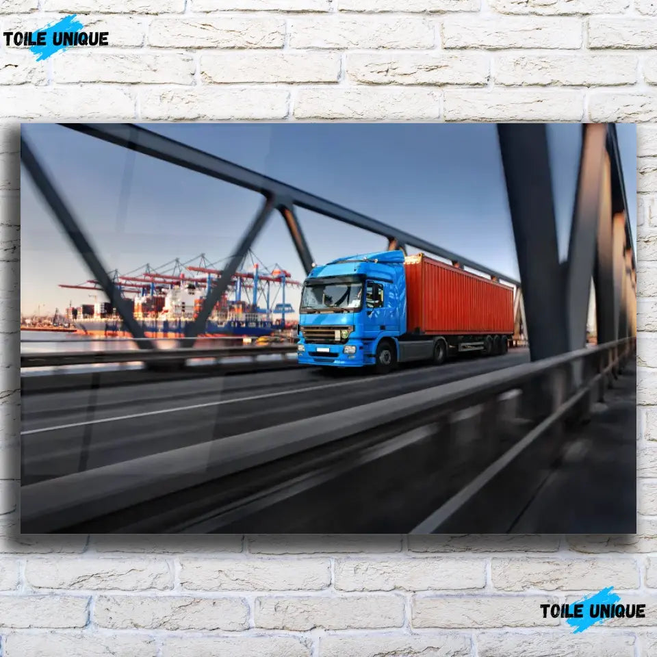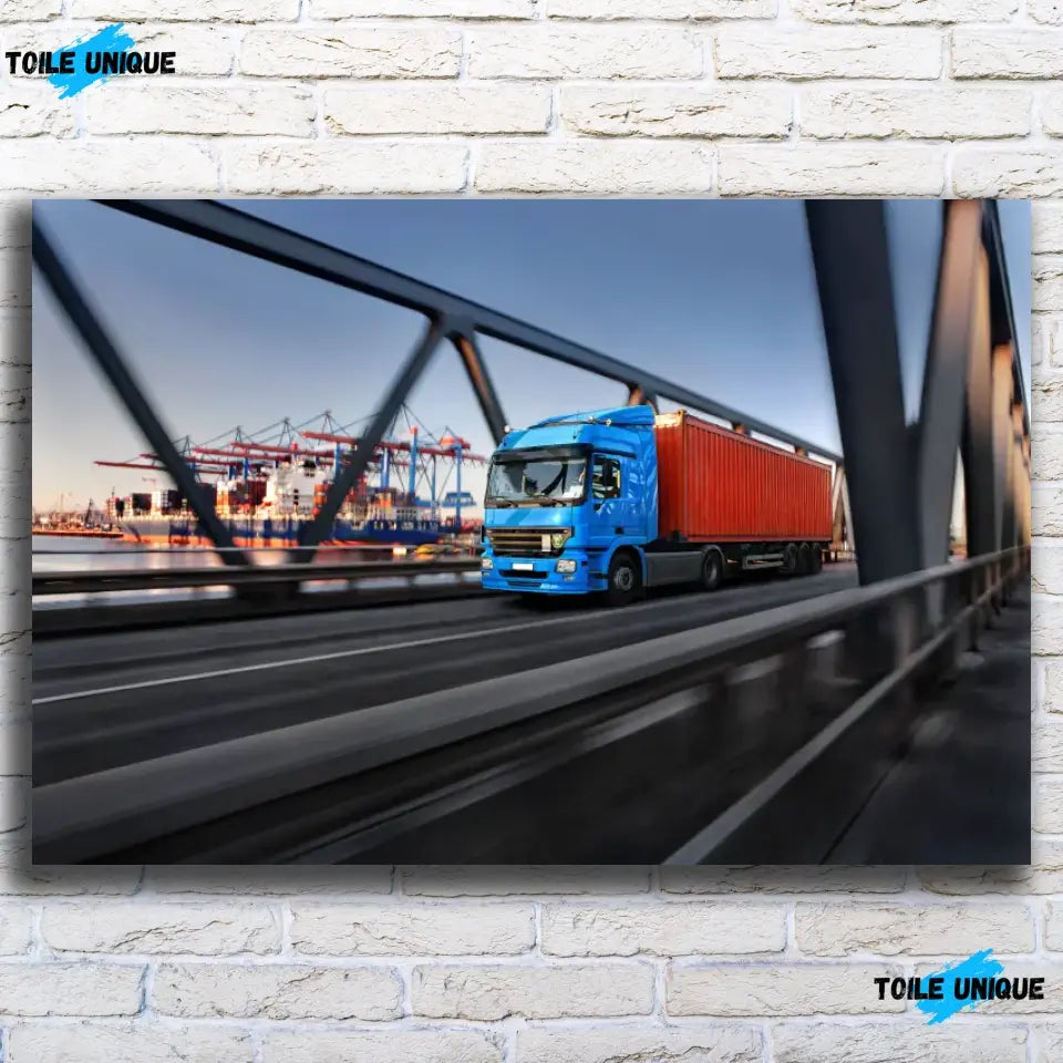 Notre tableau de camion en mouvement capture l'essence du transport et de la logistique avec un dynamisme saisissant. La vivacité de la photographie, avec le camion roulant à grande vitesse sur le pont, évoque la puissance et la liberté du voyage sur route. Cette œuvre d'art est une célébration de l'industrie du transport et un hommage à ceux qui sillonnent les autoroutes.