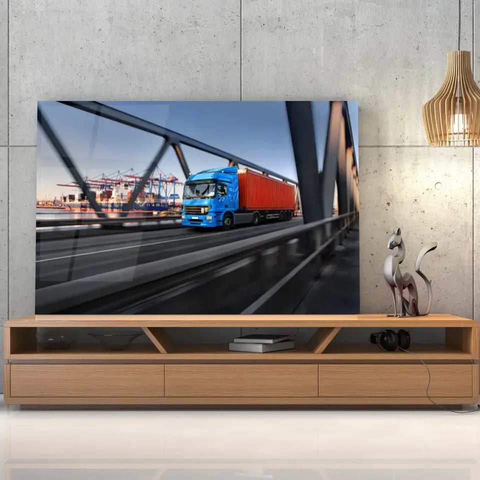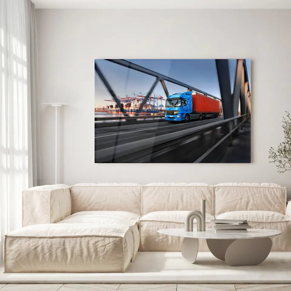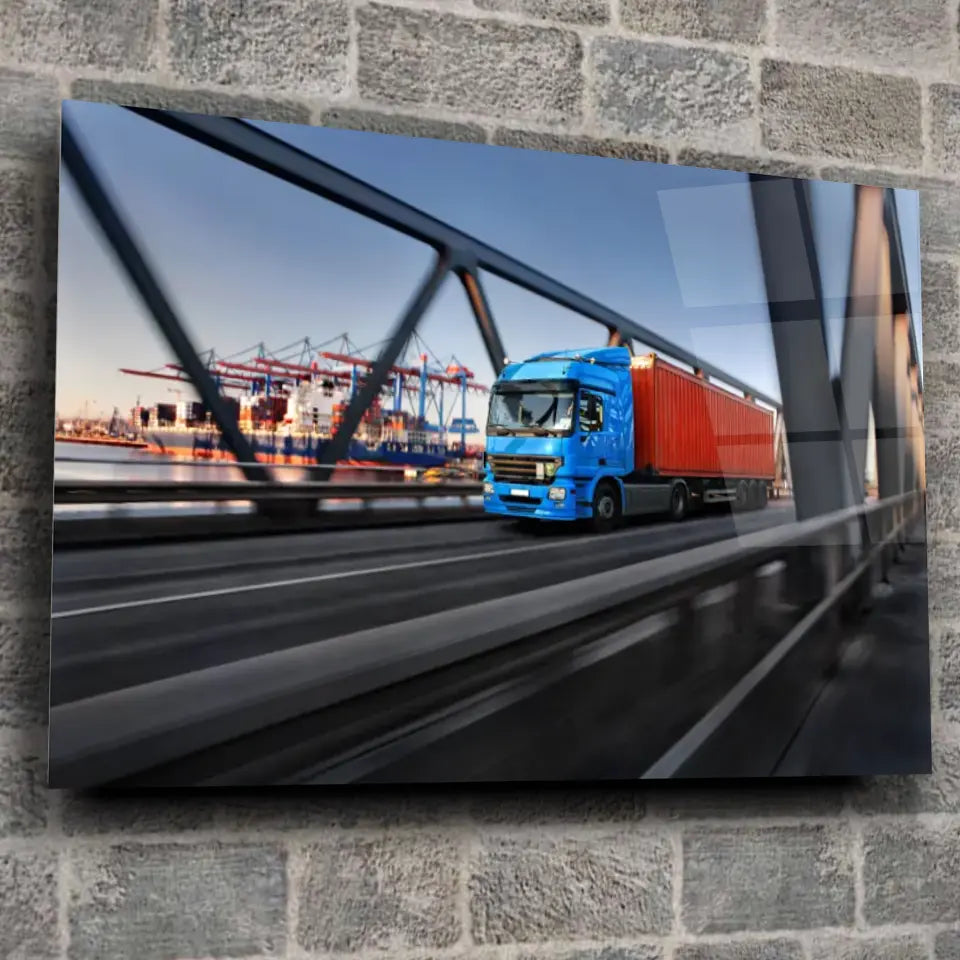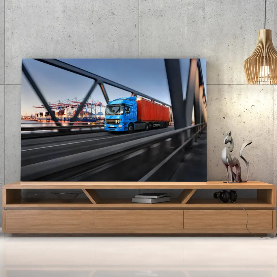 Notre tableau de camion en mouvement capture l'essence du transport et de la logistique avec un dynamisme saisissant. La vivacité de la photographie, avec le camion roulant à grande vitesse sur le pont, évoque la puissance et la liberté du voyage sur route. Cette œuvre d'art est une célébration de l'industrie du transport et un hommage à ceux qui sillonnent les autoroutes.