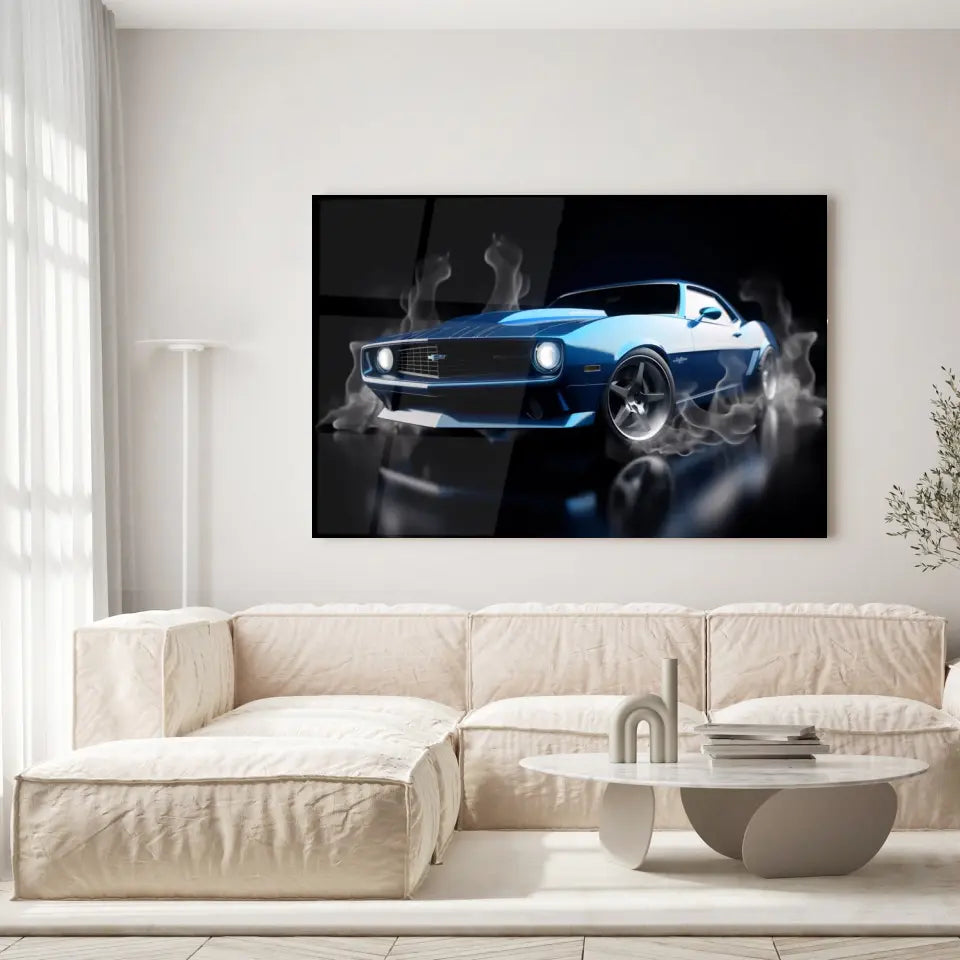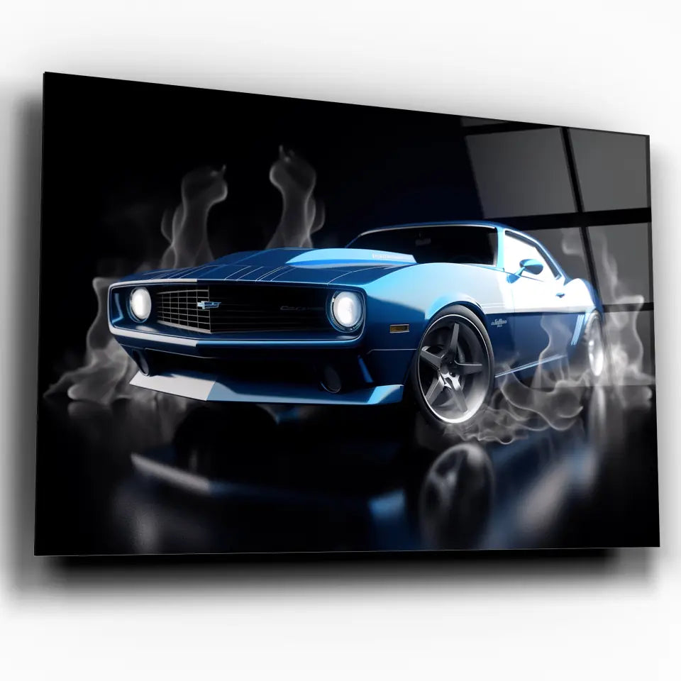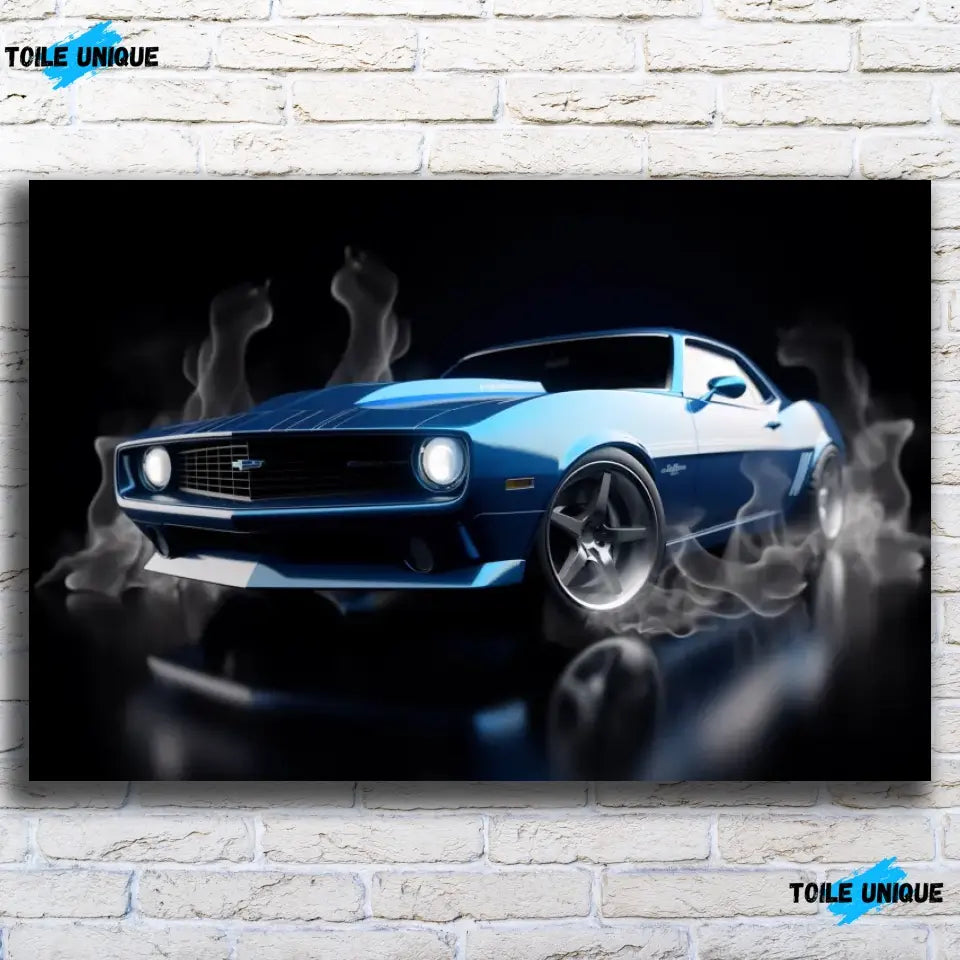 Embrassez le charme vintage avec ce tableau de la Chevrolet Camaro bleue classique. Cette œuvre saisit le pouvoir et le style intemporel de la Camaro, une icône américaine qui continue de captiver les amateurs de voitures à travers les générations. Avec ses lignes audacieuses et sa couleur bleue profonde, elle est parfaite pour donner une touche de caractère à tout espace de vie.