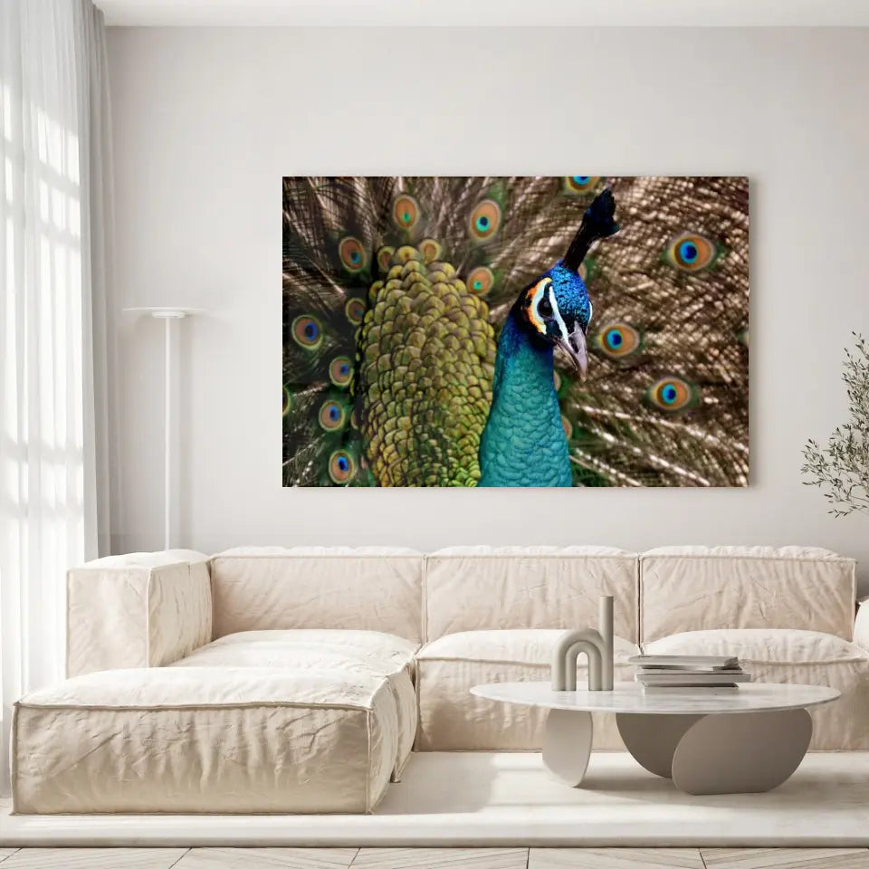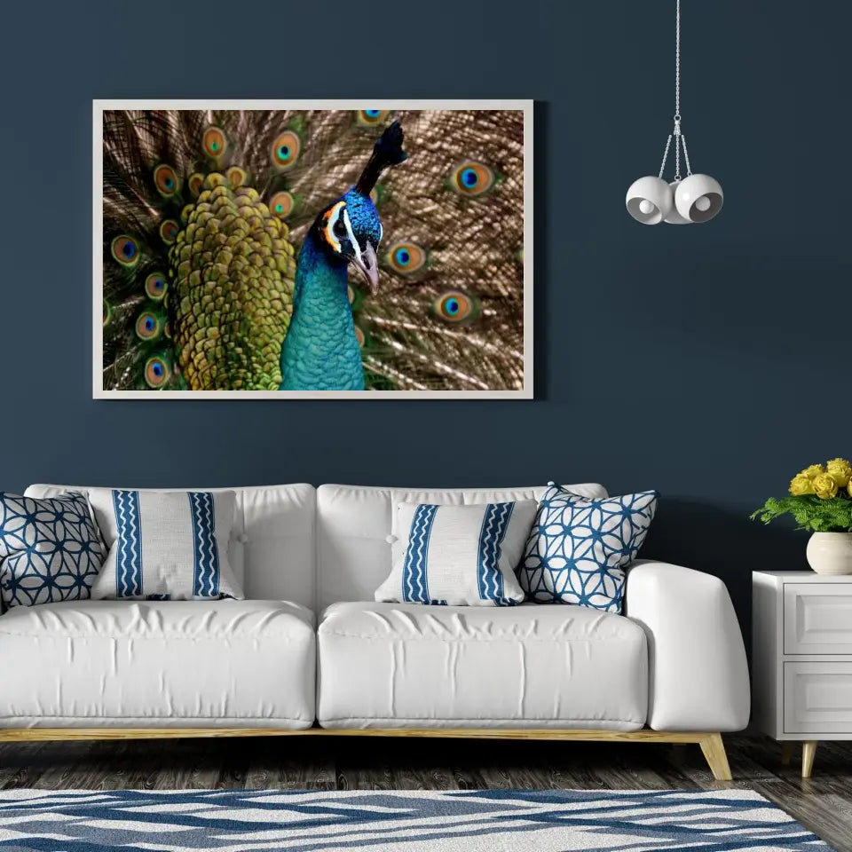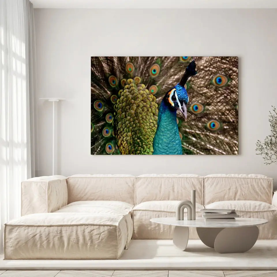 Ajoutez une touche de raffinement à votre intérieur avec ce superbe tableau décoratif représentant un paon majestueux.
