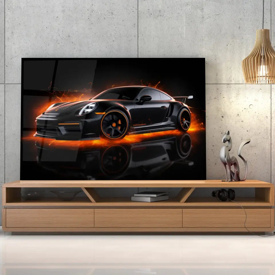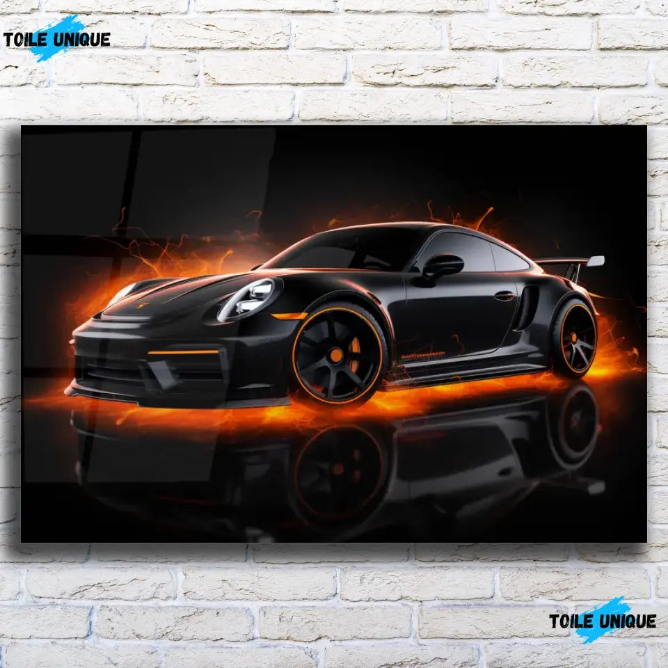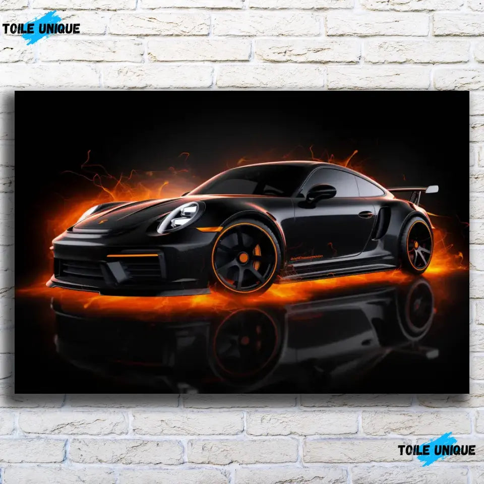 Tableau Porsche Dynamique en Flammes - Puissance et Élégance sur Toile