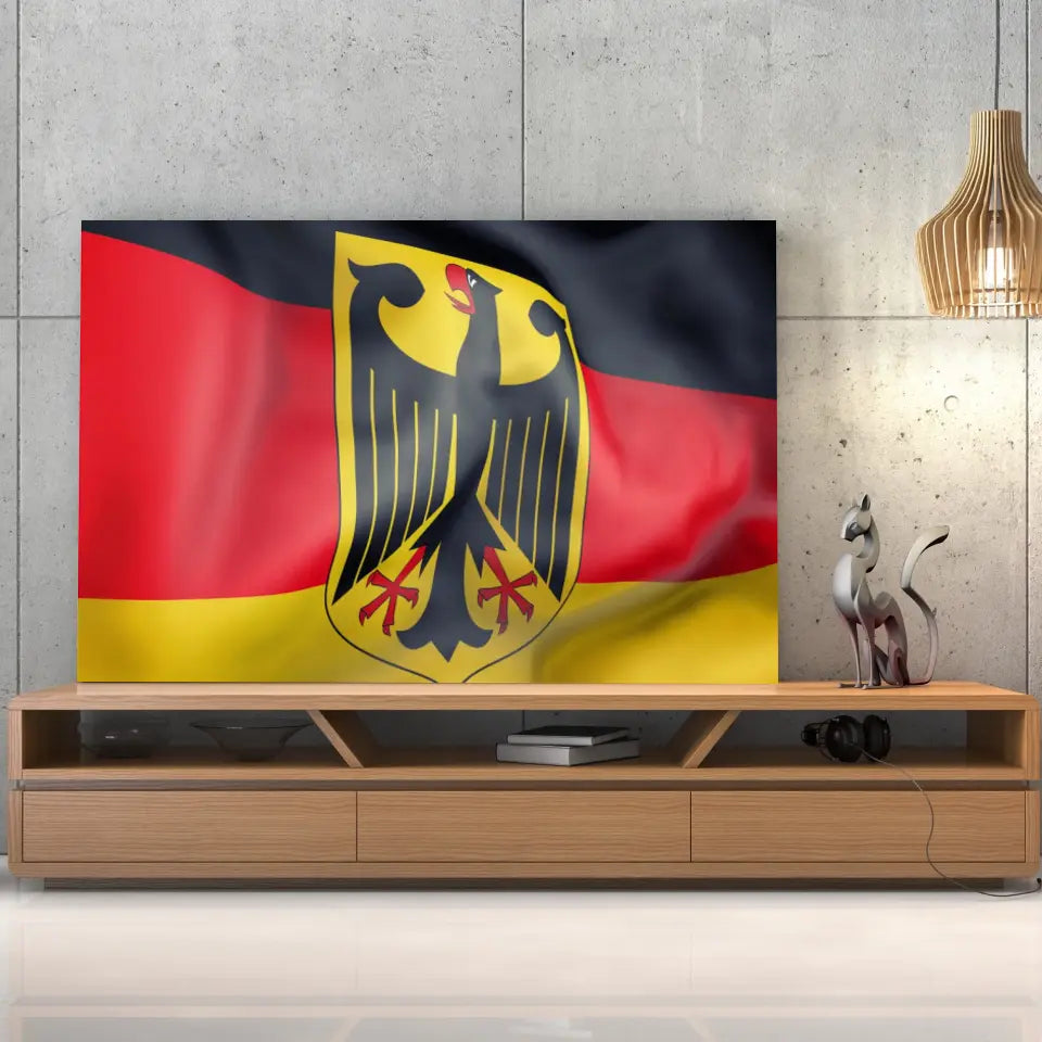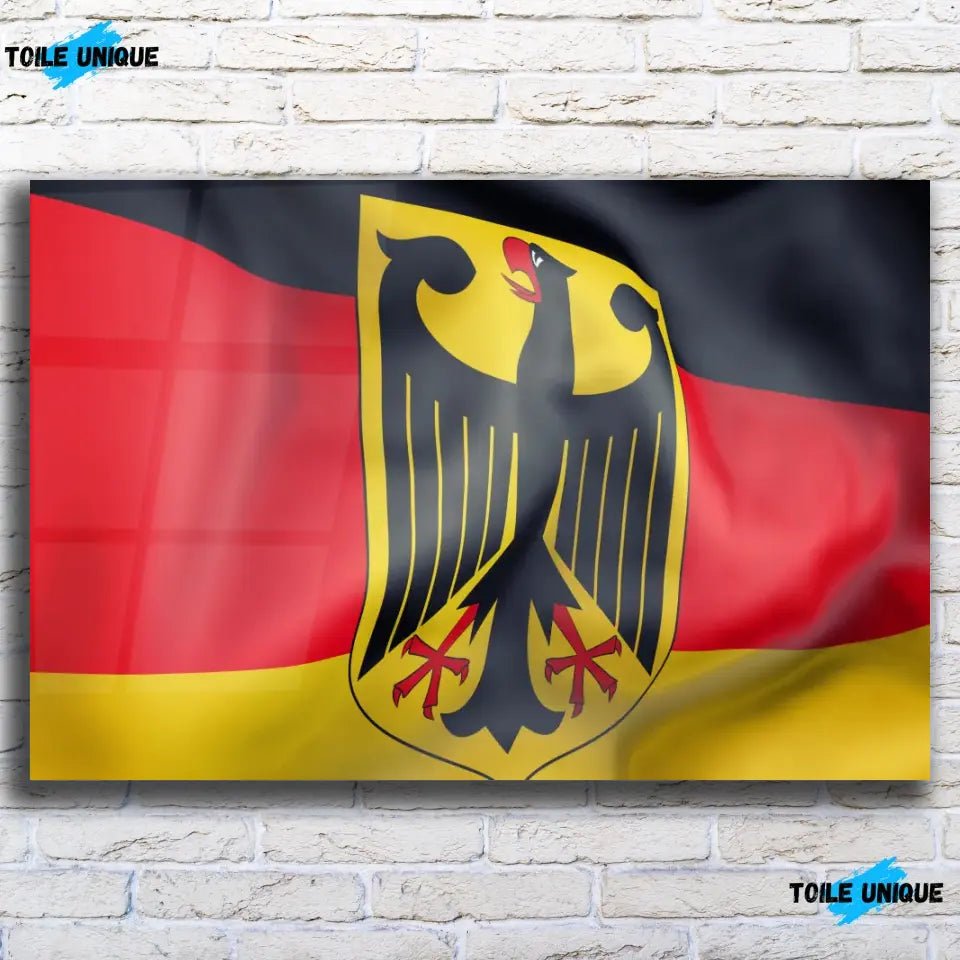 Embellissez votre intérieur avec ce superbe tableau représentant le drapeau de l'Allemagne. Parfait pour les passionnés de la culture allemande, ce tableau est idéal pour agrémenter votre salon, chambre ou bureau.