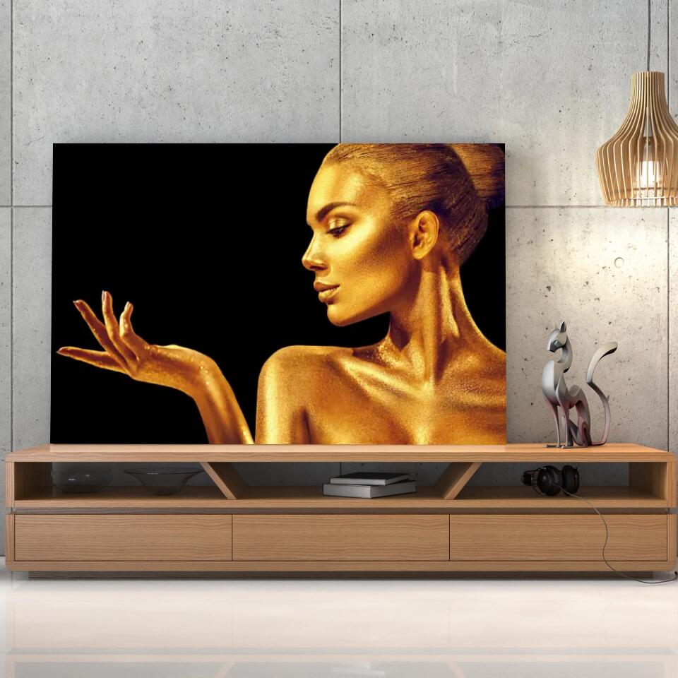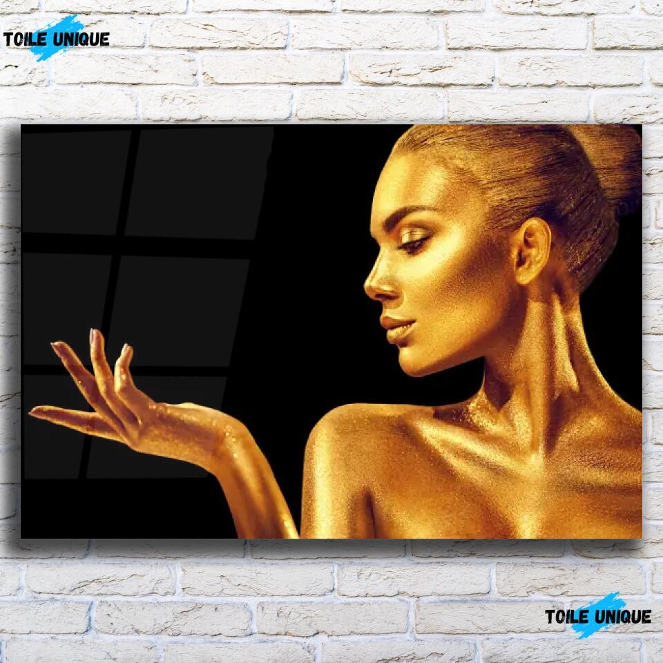 Ce magnifique tableau femme glamour en or est un élément d'art mural parfait pour n'importe quelle pièce de votre maison ou bureau.