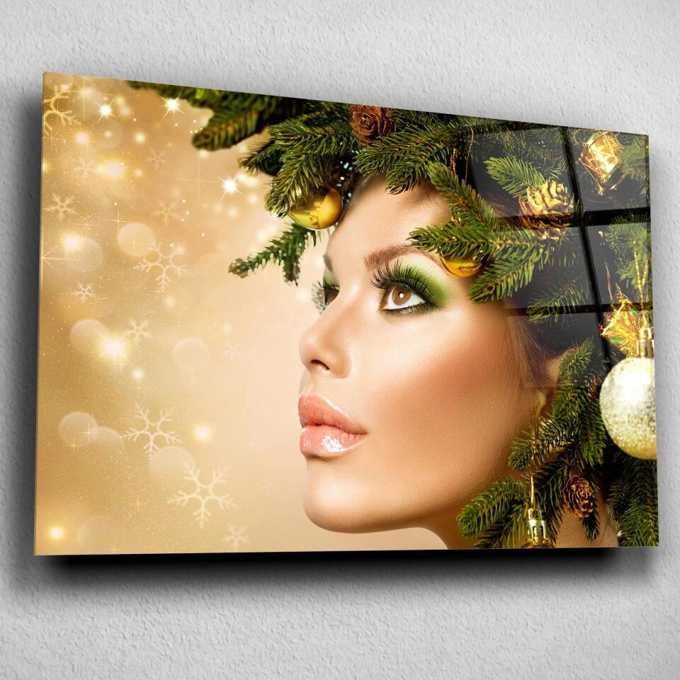 Ce magnifique tableau femme noël en or est un élément d'art mural parfait pour n'importe quelle pièce de votre maison ou bureau.