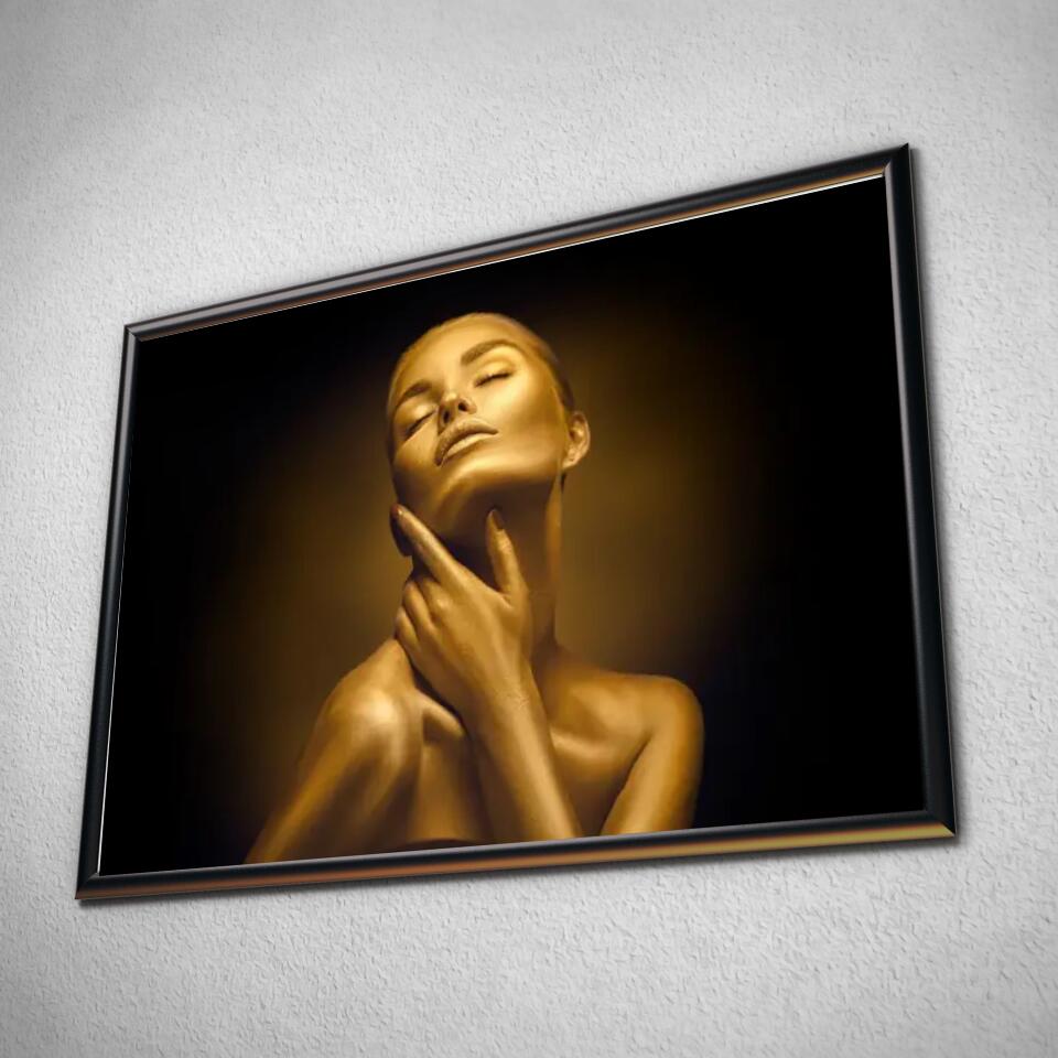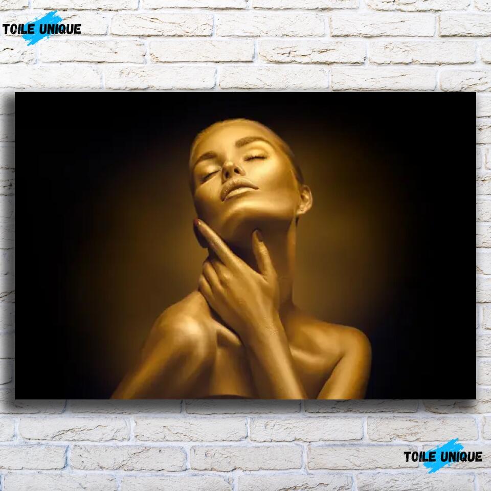 Ce magnifique tableau femme sensuelle en or est un élément d'art mural parfait pour n'importe quelle pièce de votre maison ou bureau.