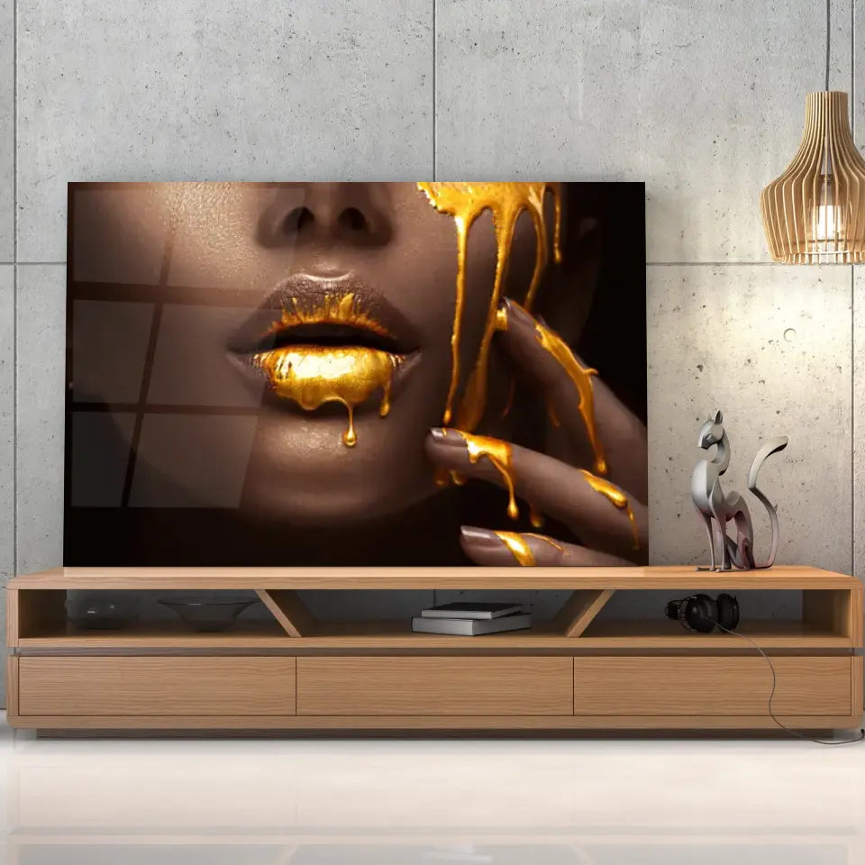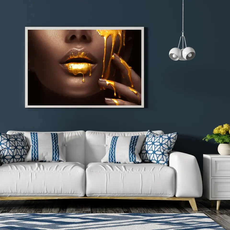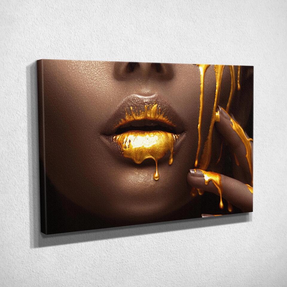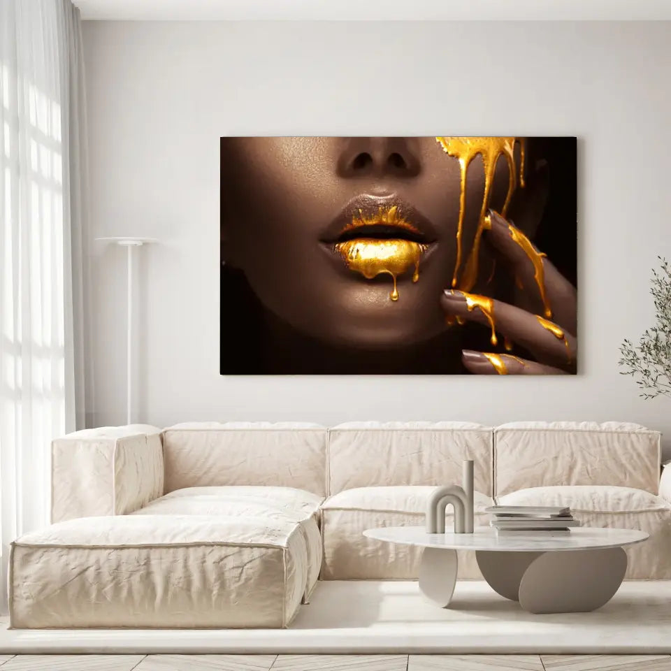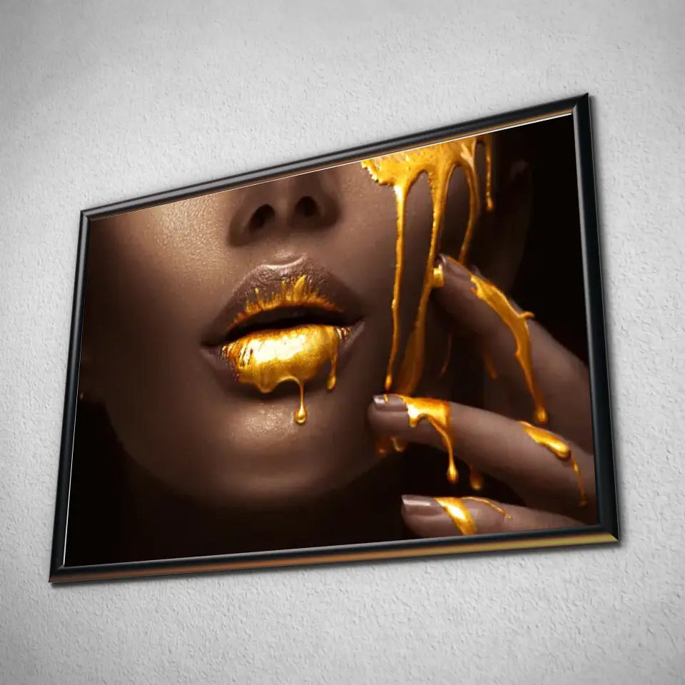 Ce magnifique tableau lèvre or liquide est un élément d'art mural parfait pour n'importe quelle pièce de votre maison ou bureau.
