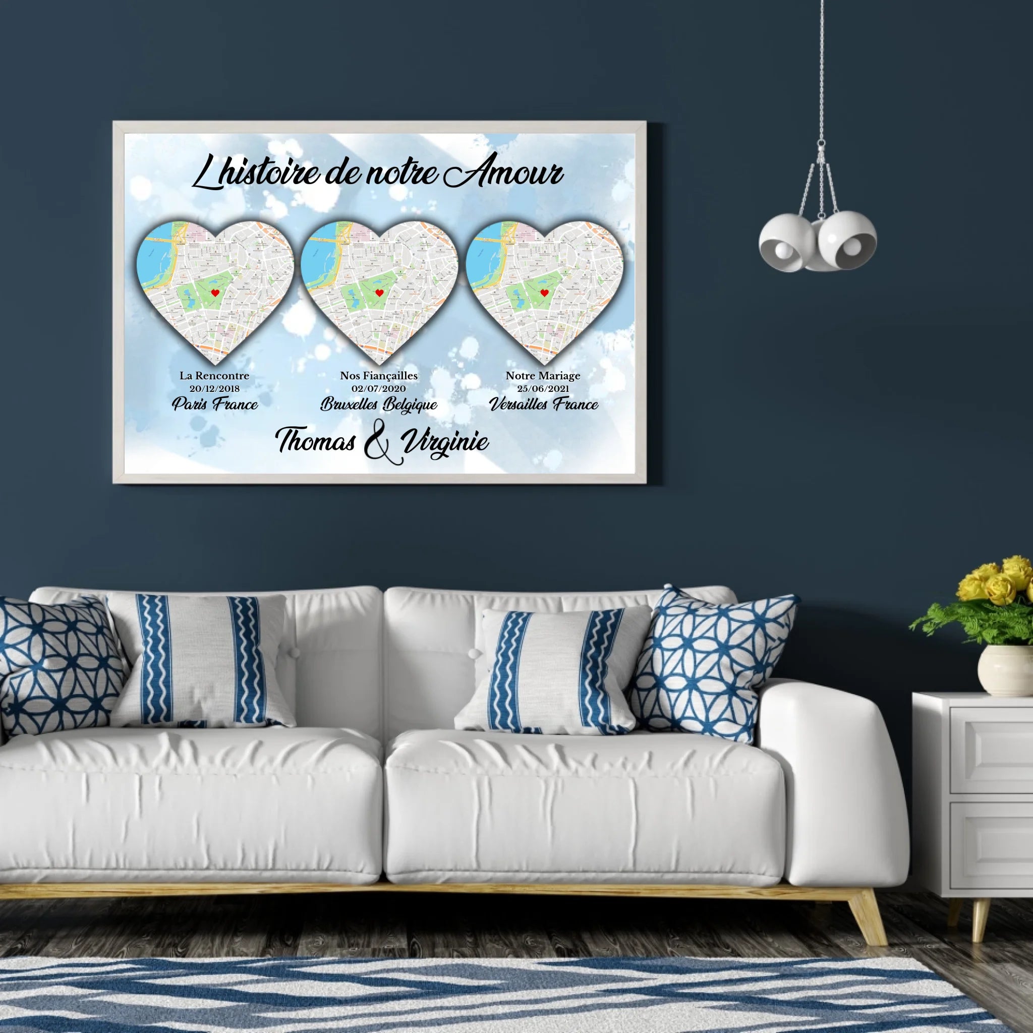 Voici un tableau couple lieu de rencontre représentant votre histoire d'amour de façon simple et élégante.