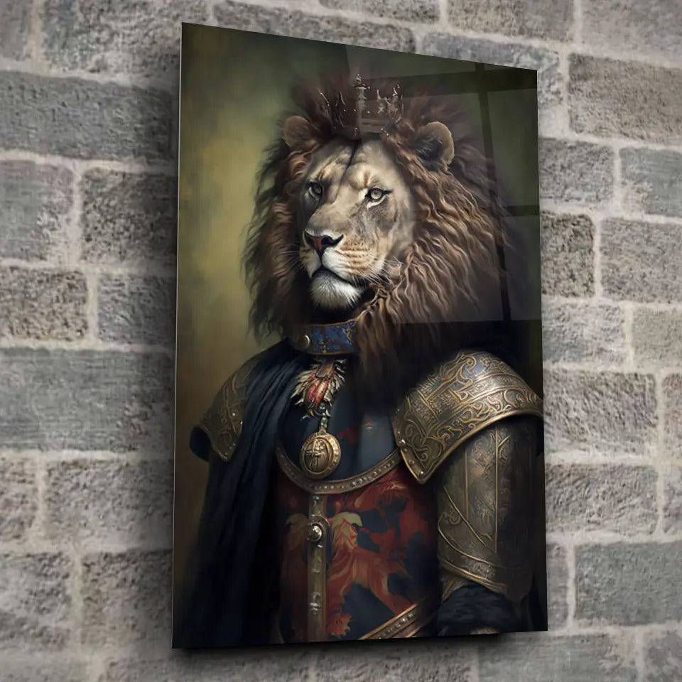 Tableau Lion avec Couronne et Armure Médiévale
