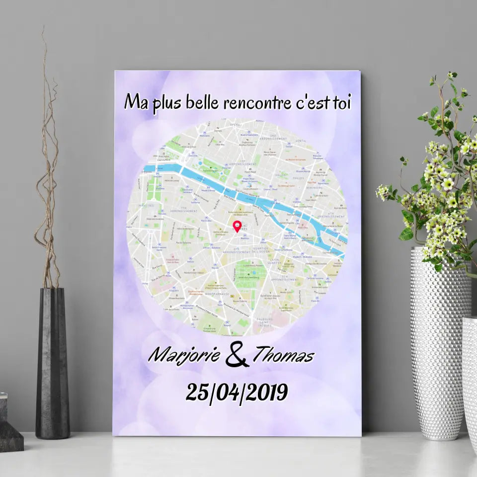 Ce tableau personnalisable Lieu de Rencontre est parfaitement adapté comme cadeau insolite pour la personne de votre choix.