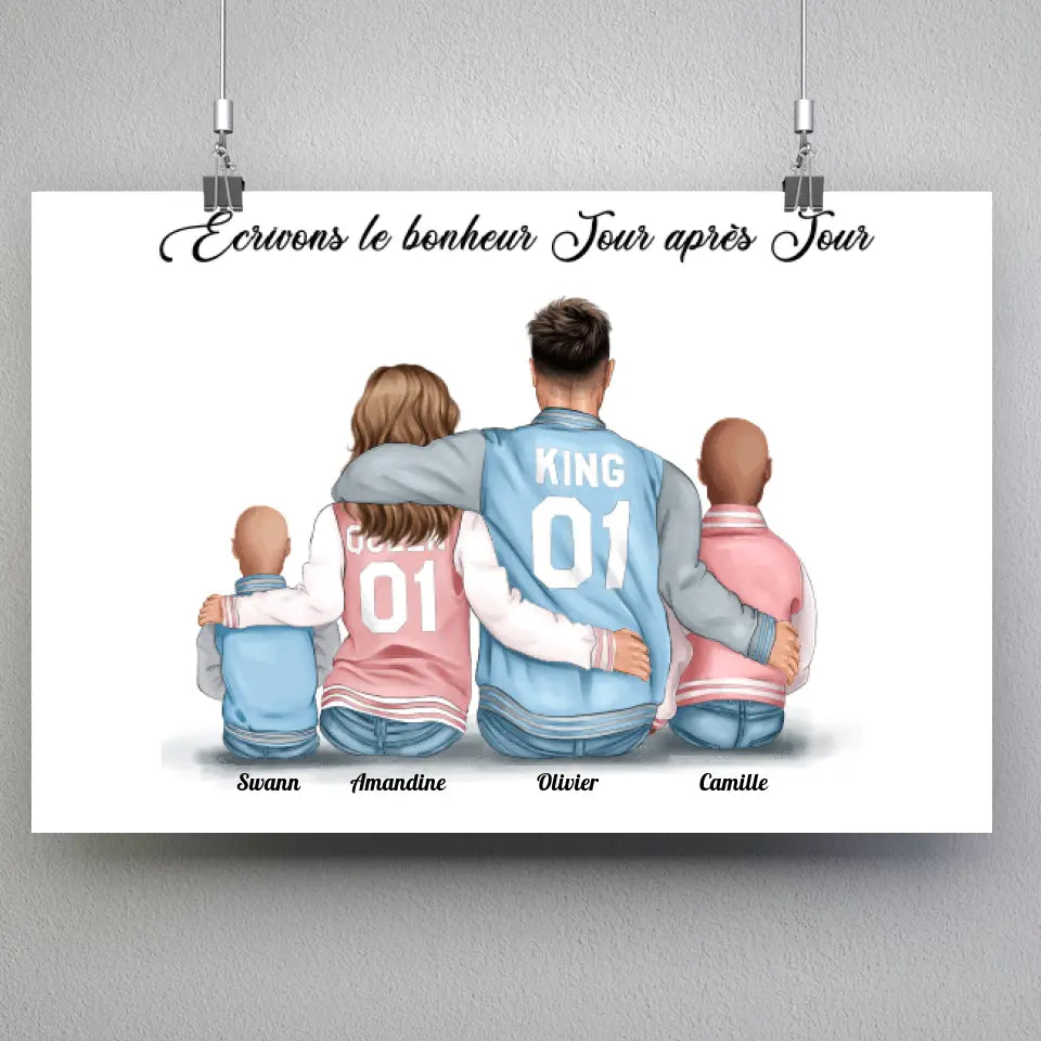 Ce tableau personnalisable reproduit tous les membres de votre famille, vous et vos 2 enfants.