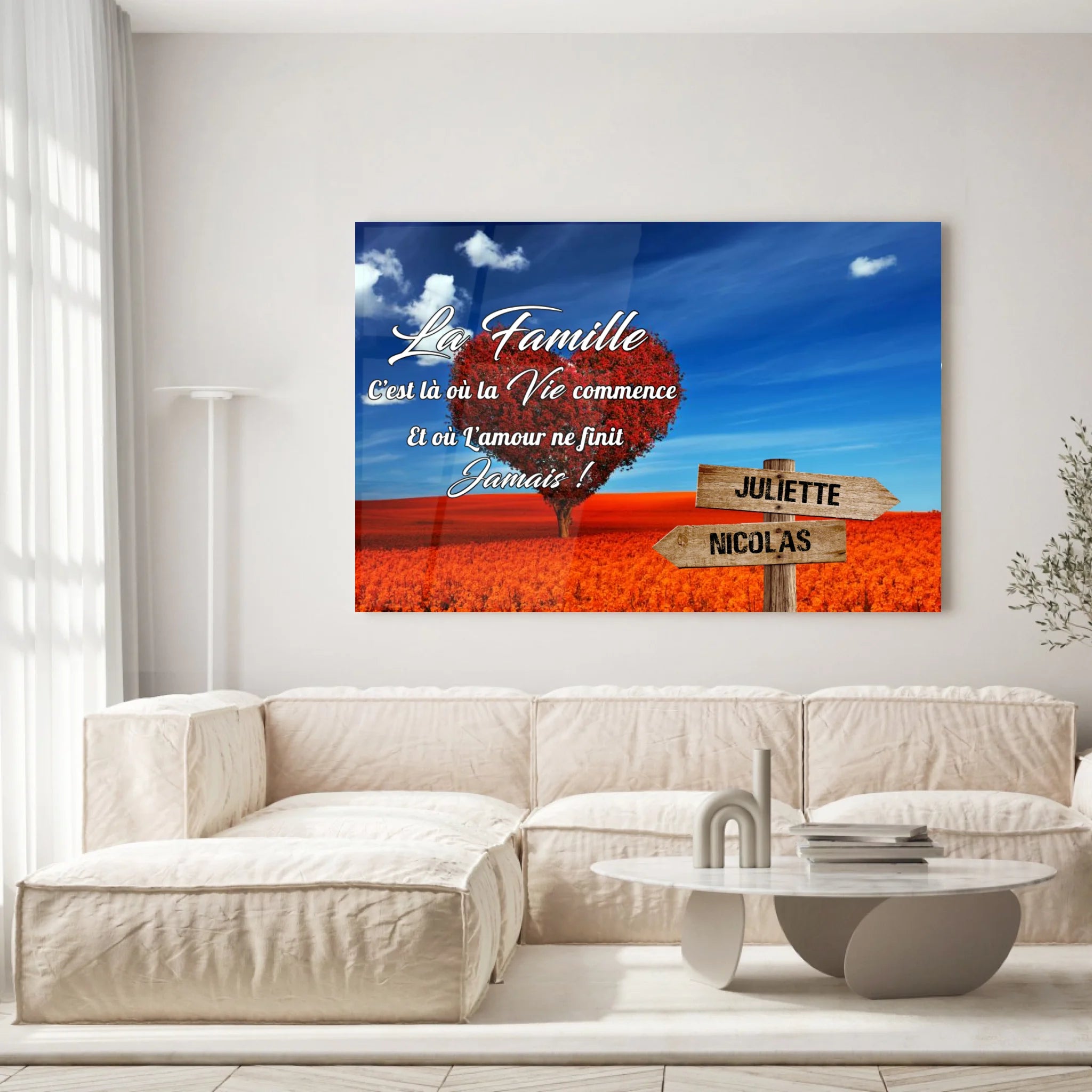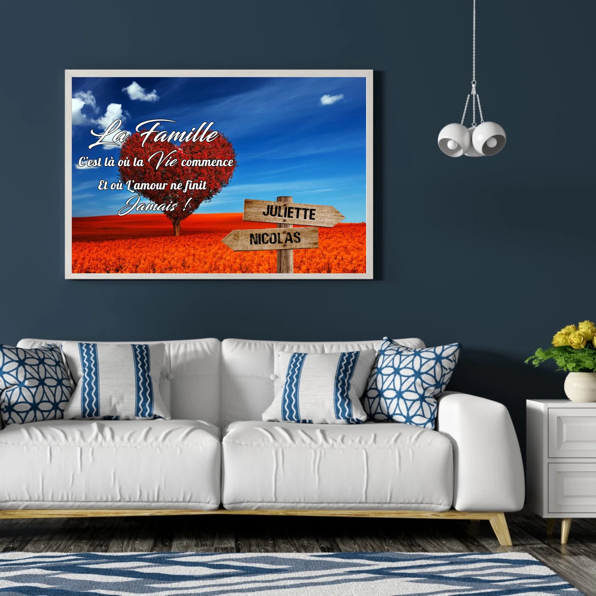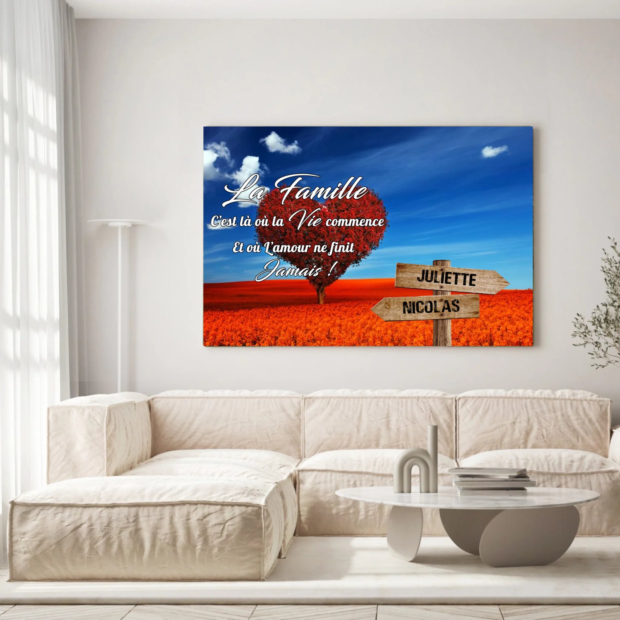 Créez vous une œuvre unique avec notre tableau prénoms personnalisés Arbre cœur