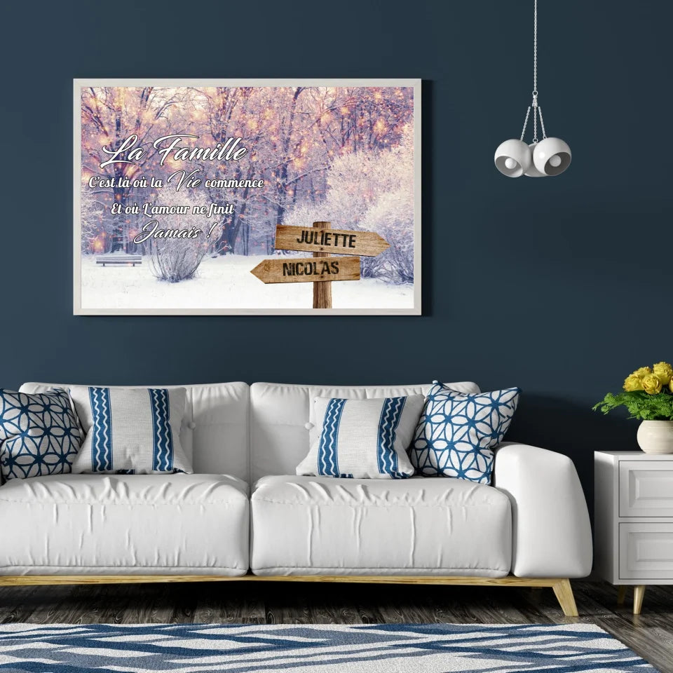 Créez vous une œuvre unique avec notre tableau prénoms personnalisé Paysage enneigé