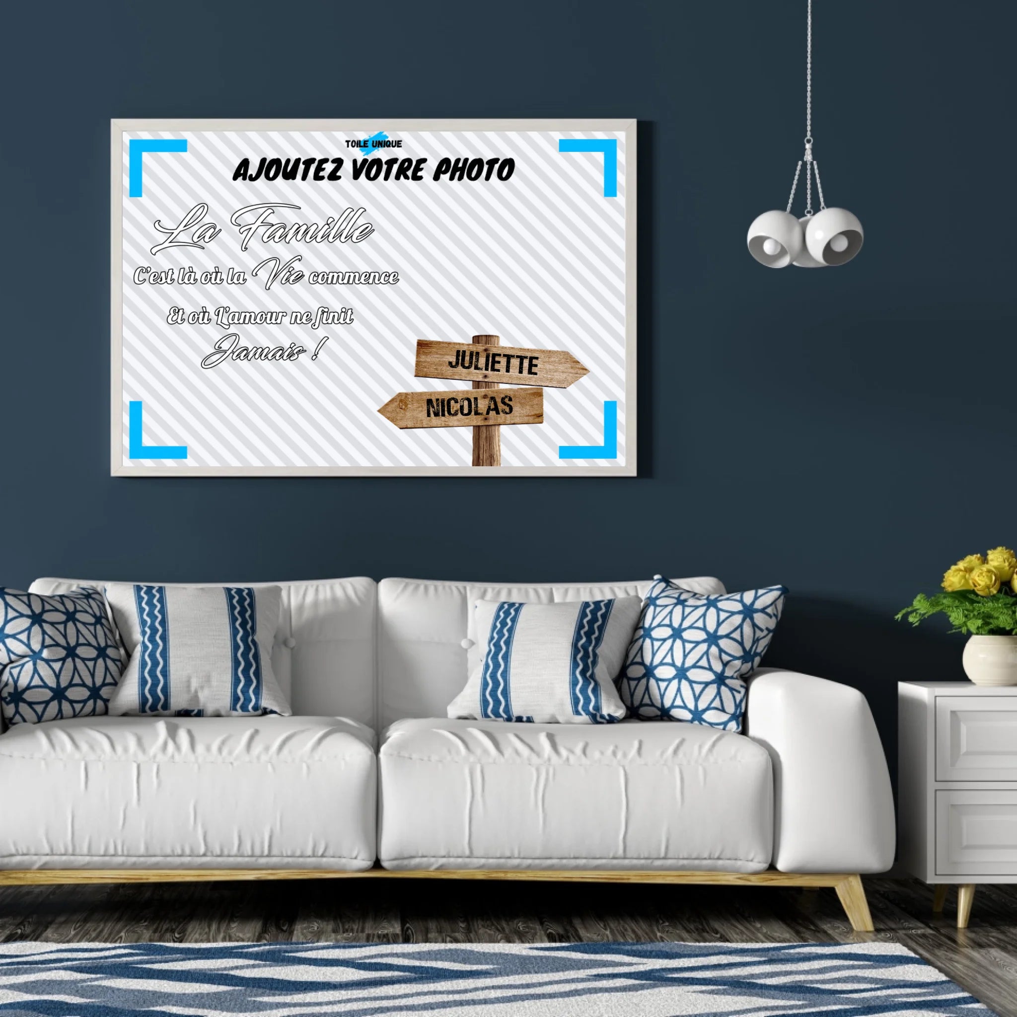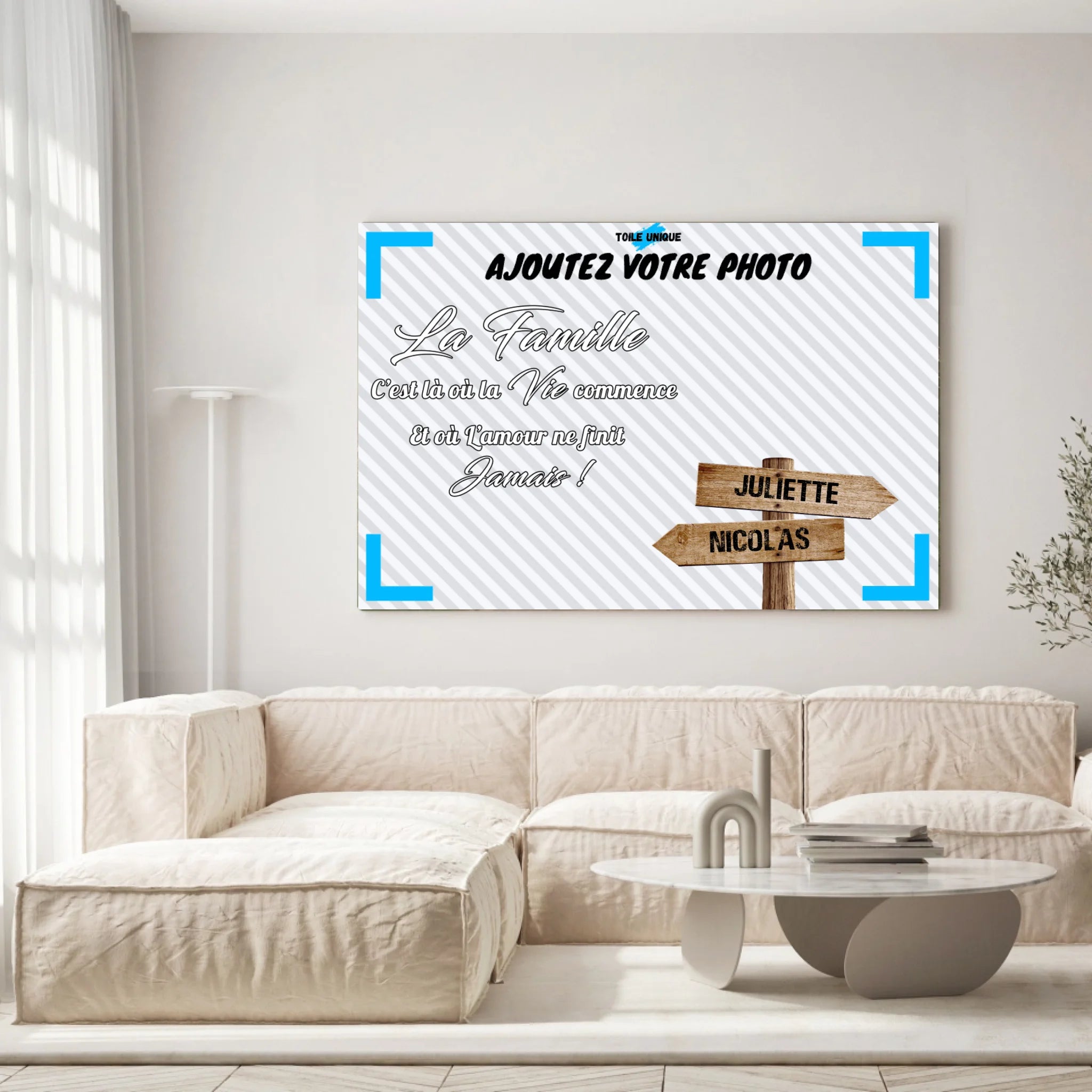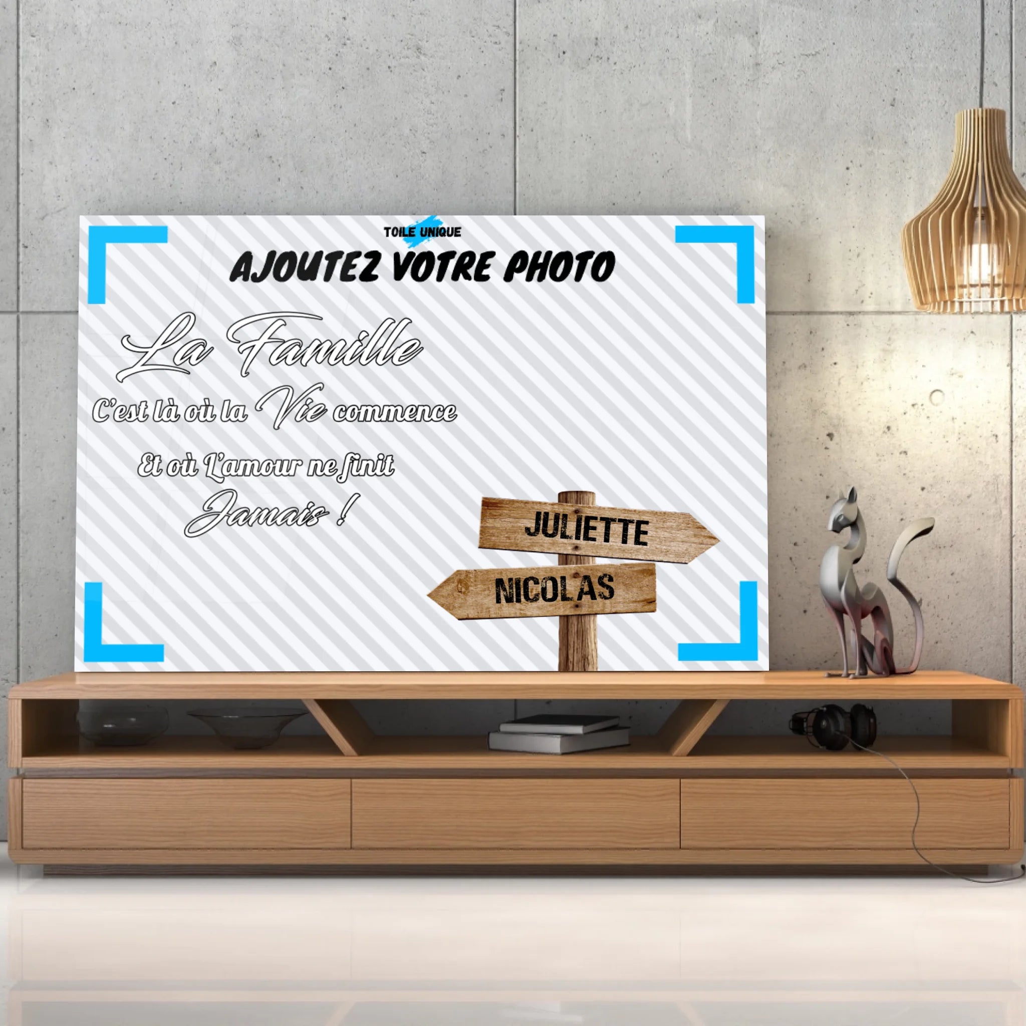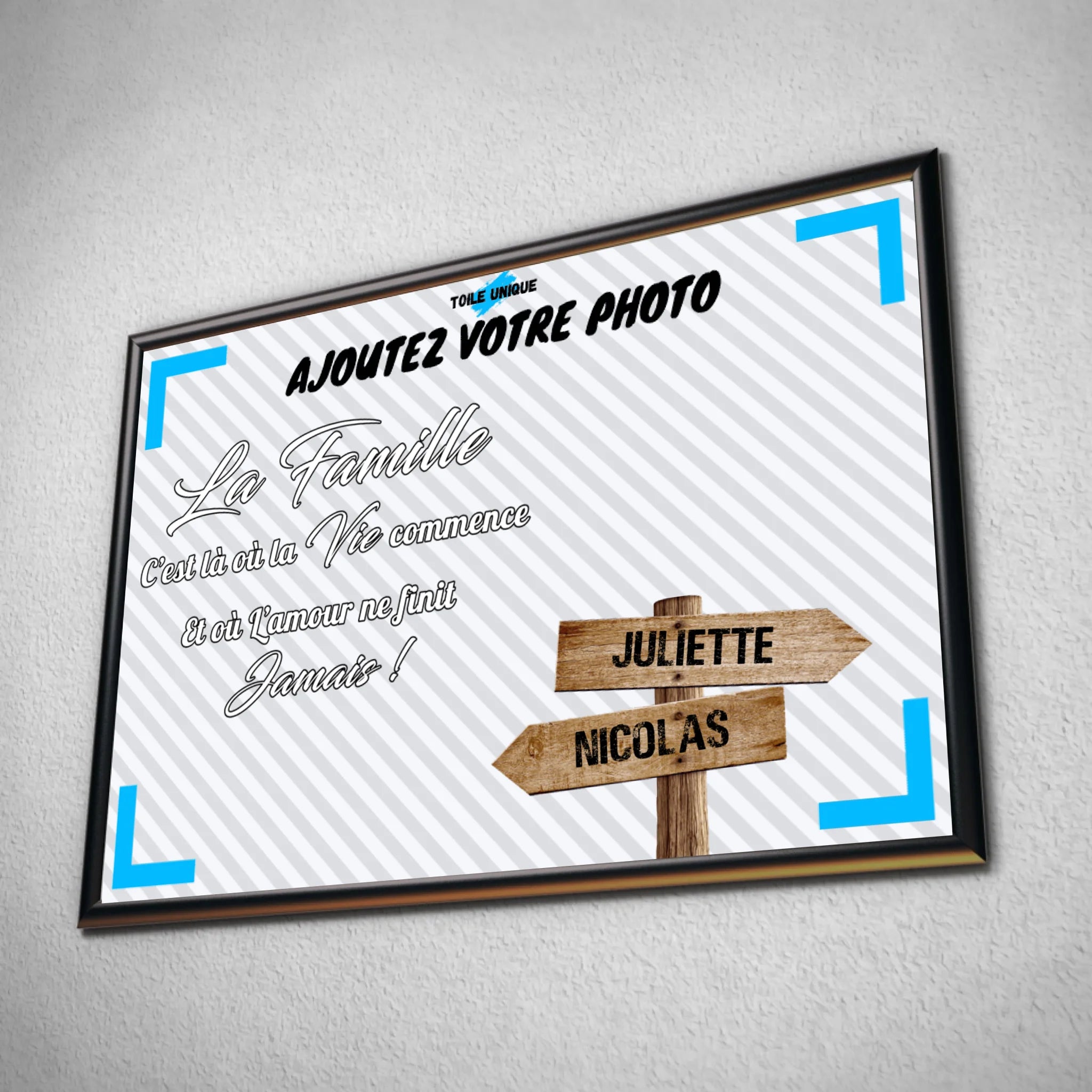 Choisissez votre support d’impression Toile ou Photo à encadrer et inscrivez vos prénoms.