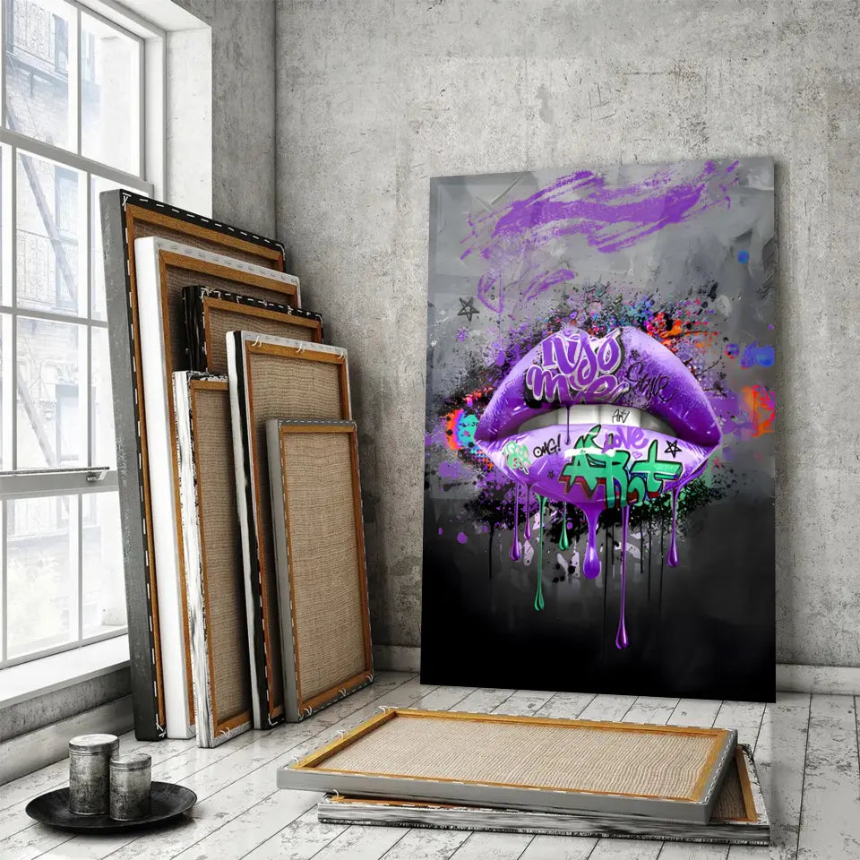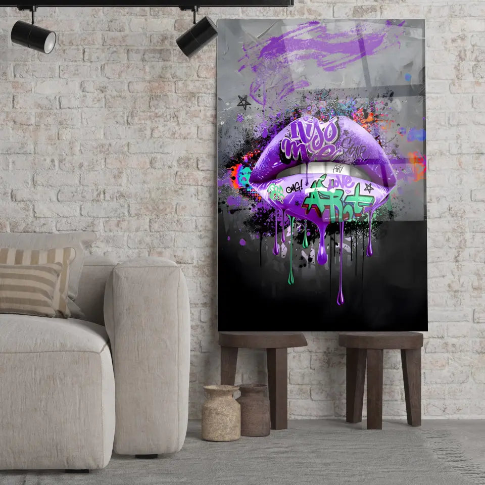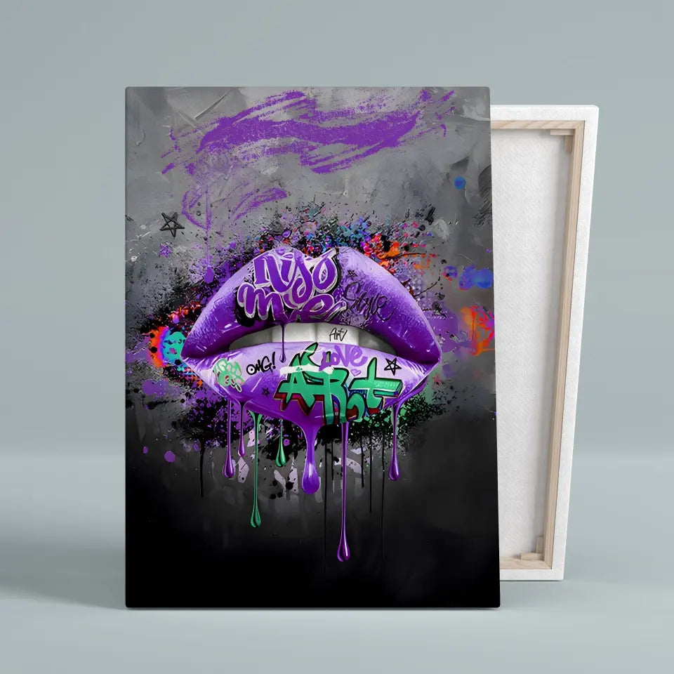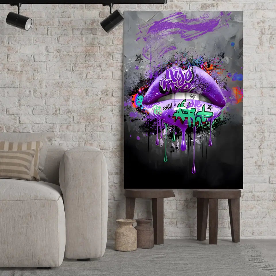 Laissez-vous captiver par notre tableau Street Art Éclat Liquide, une représentation audacieuse de lèvres dégoulinantes de peinture.