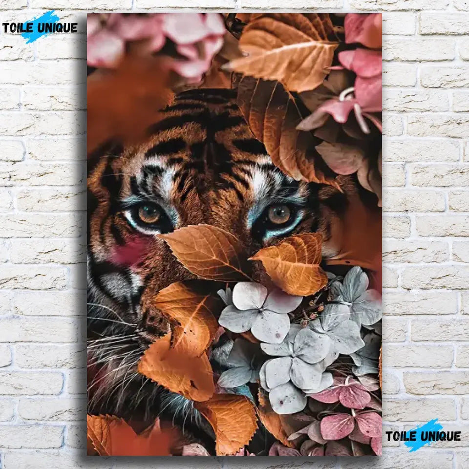 Ce magnifique tableau tigre feuillage est un élément d'art mural parfait pour n'importe quelle pièce de votre chambre, salon ou bureau.